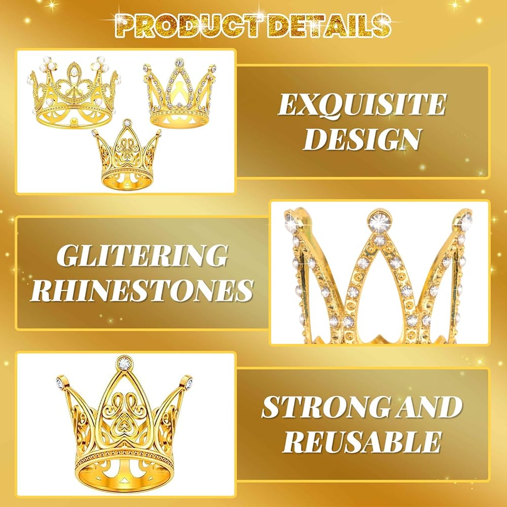 👑【تستخدم على نطاق واسع】يمكن استخدام أغطية الكعكة ذات التاج الذهبي هذه كأغطية للكيك بالإضافة إلى إكسسوارات شعر للأطفال والدمى والحيوانات الأليفة وتيجان لتنسيق الزهور. مثالي لأعياد الميلاد، وحفلات استقبال الأطفال، وحفلات الزفاف، والذكرى السنوية، وأنواع الحفلات، والحفلات التنكرية، والحفلات الراقصة، وحفلات التصوير الفوتوغرافي، وأي مناسبة تريد أن تكون أكثر سحرًا وتألقًا.