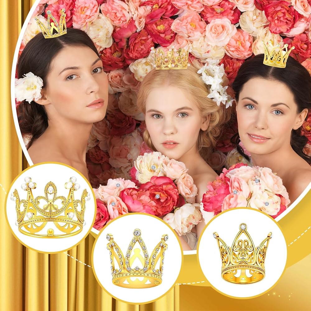 👑 【تشمل العبوة】سوف تحصل على 15 قطعة علوية صغيرة للكيك في 3 أنماط مختلفة و100 قطعة من دبابيس تاج الزهور، بما في ذلك 5 قطع 2 × 1.5 بوصة من سبائك الألماس بدون ألماس، 5 قطع 1.38 × 1.38 بوصة تيجان دائرية متعددة الماس، 5 قطع تيجان صغيرة مقاس 1.18 × 1.18 بوصة، وأنماط متعددة ولون ذهبي عتيق لتلبية احتياجاتك الزخرفية المتنوعة.