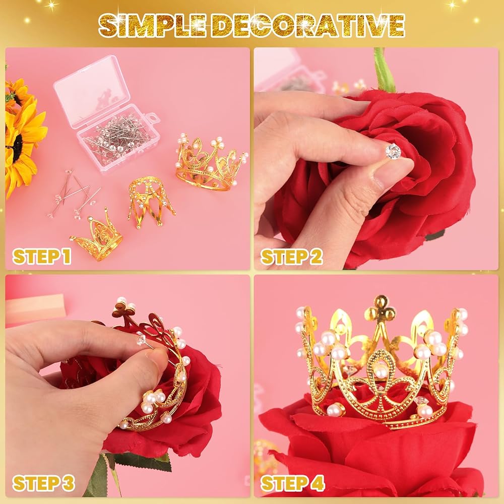 .👑【خفيفة الوزن وقابلة لإعادة الاستخدام】التيجان الصغيرة لترتيبات الزهور مصنوعة من معدن خفيف الوزن وقوي وقابل لإعادة الاستخدام، والذي يمكن استخدامه لفترة طويلة. تم تصميم دبابيسنا الزهرية المستقيمة بأطراف مدببة، مناسبة لتنسيق الزهور وصدر الزفاف. لا يمكن استخدامها فقط لتزيين الكعك، ولكن أيضًا كدعائم للعروض أو كأغطية للرأس لمسابقات ملكات جمال الأطفال.