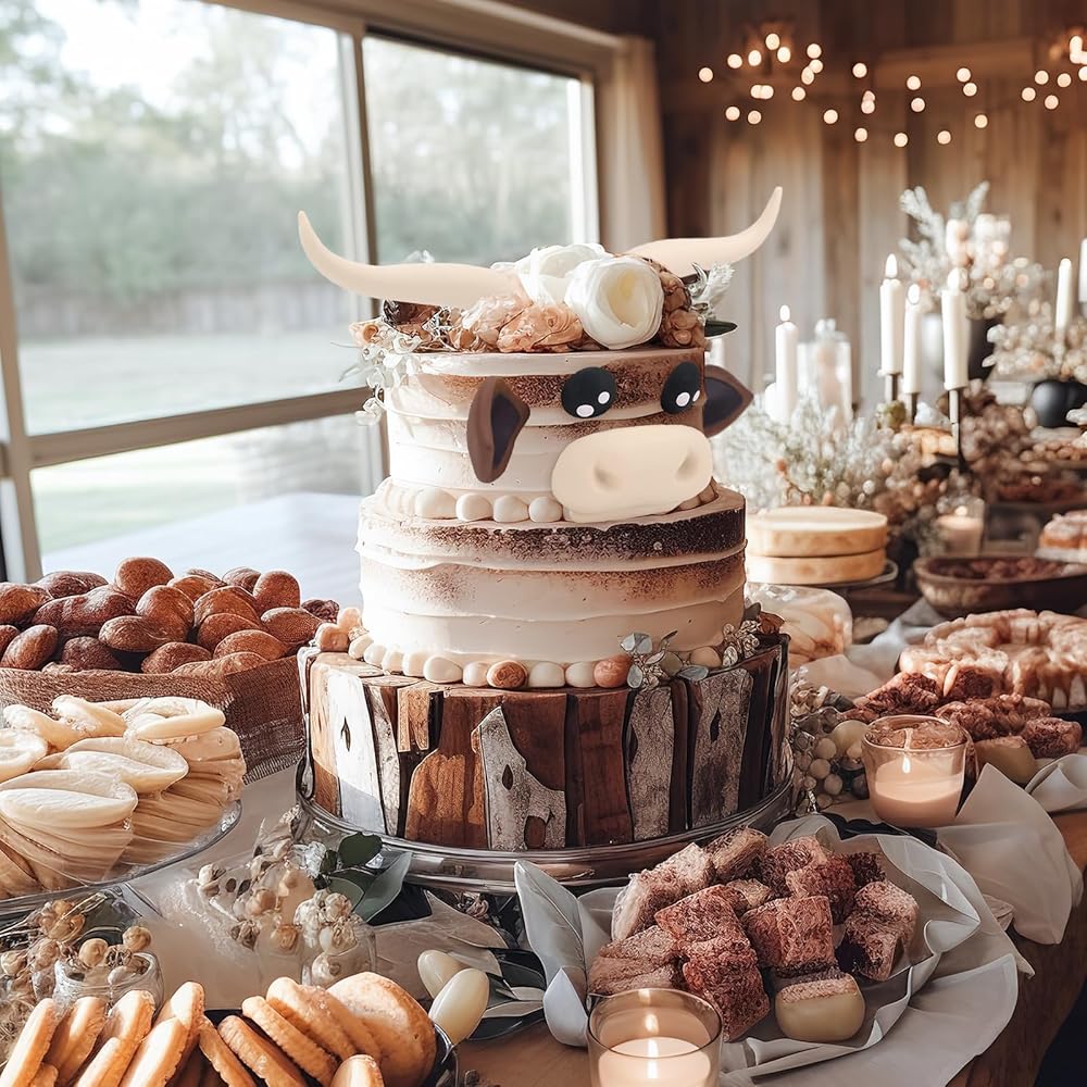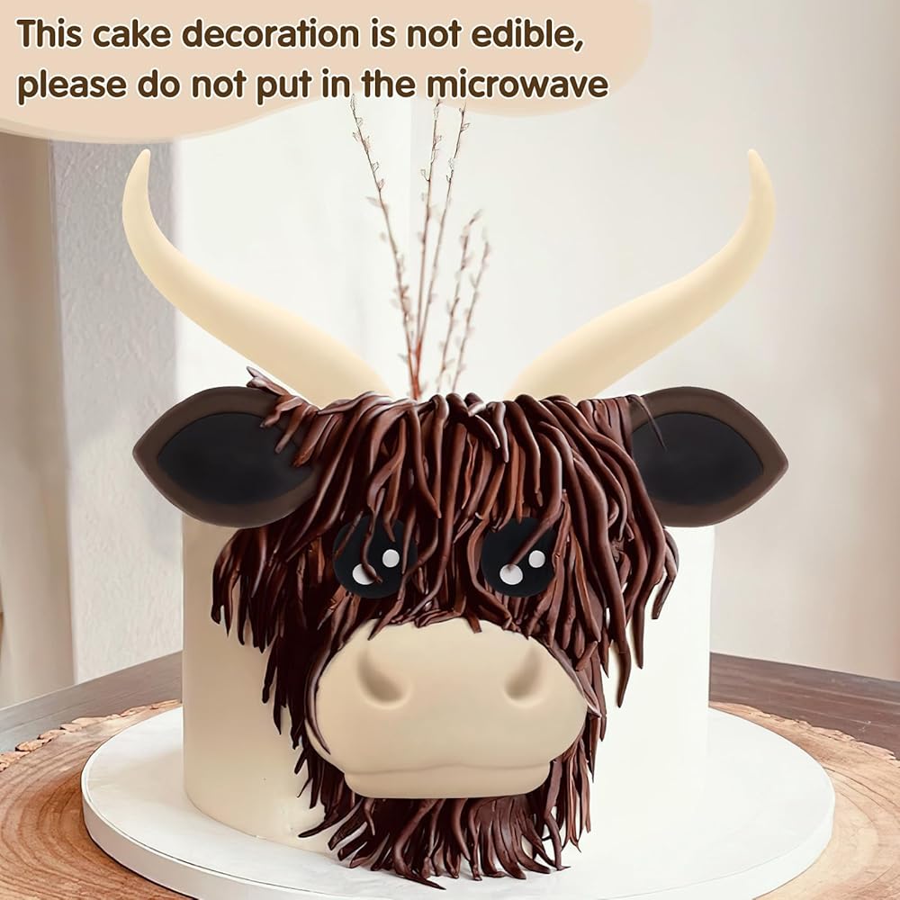 Suitable for 6-10 inch cakes - This Highland Cow cake topper is made of 7 parts, Highland cattle horns, ears, nose and eyes, when you add them to the cake they will make your simple cake become Three-dimensional and attractive.