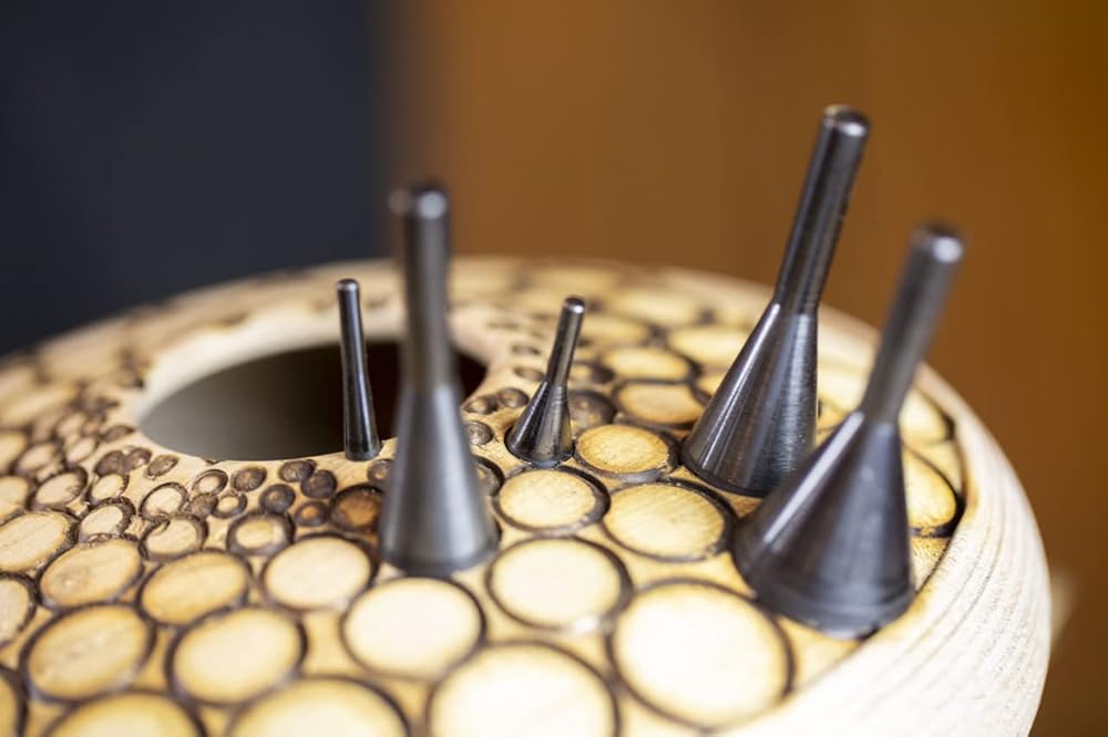 الطراز: MP21-25 رائع لصنع العيون على الحيوانات والطيور والمنحوتات البشرية مثل الدببة والبوم والأسماك البشرية والأفعى والتمساح والتمساح والتمساح، الأنماط المتموجة ممتازة لتركيب تصميمات على الخشب والأطباق والملاعق. احتراق بعد التركيب سيعزز عملك اعتمادًا على الضغط المطبق، تم تصميم هذه الملحقات لترك حلقات دائرية سوداء بشكل طبيعي لأنها تحرق الخشب تضيف بعدًا جديدًا استثنائيًا للنحت الخشبية ونحوتات الخشب موصى بها لأدوات الطاقة كما يلي: 1/8 بوصة عرقوب - مجنون القطع اليدوية الصغيرة 0.6 سم عرقوب - أدوات القطع اليدوية الصغيرة 1/4 بوصة - أدوات القطع - أدوات الصمغية ومستقيمة ملاحظة: لا تستخدم على أي من هذه الإكسسوارات مقابض دوارة أو طحن هواء/كهربائية مزودة بمشبك. يستخدم فقط مع أدوات شد الكلوريت. يسمح تصميم الإمساك بملحقاتنا بالدوران بشكل مستقيم بسرعات عالية، دون أن تتذبذب، وهو ما يمكن مع وحدات الطاقة الممزقة. تتكون من: 5 - 1/4 بوصة عرقوب من 3/8 بوصة إلى 1 بوصة 3 - 1/8 بوصة عرقوب من 3/16 بوصة إلى 3/8 بوصة
