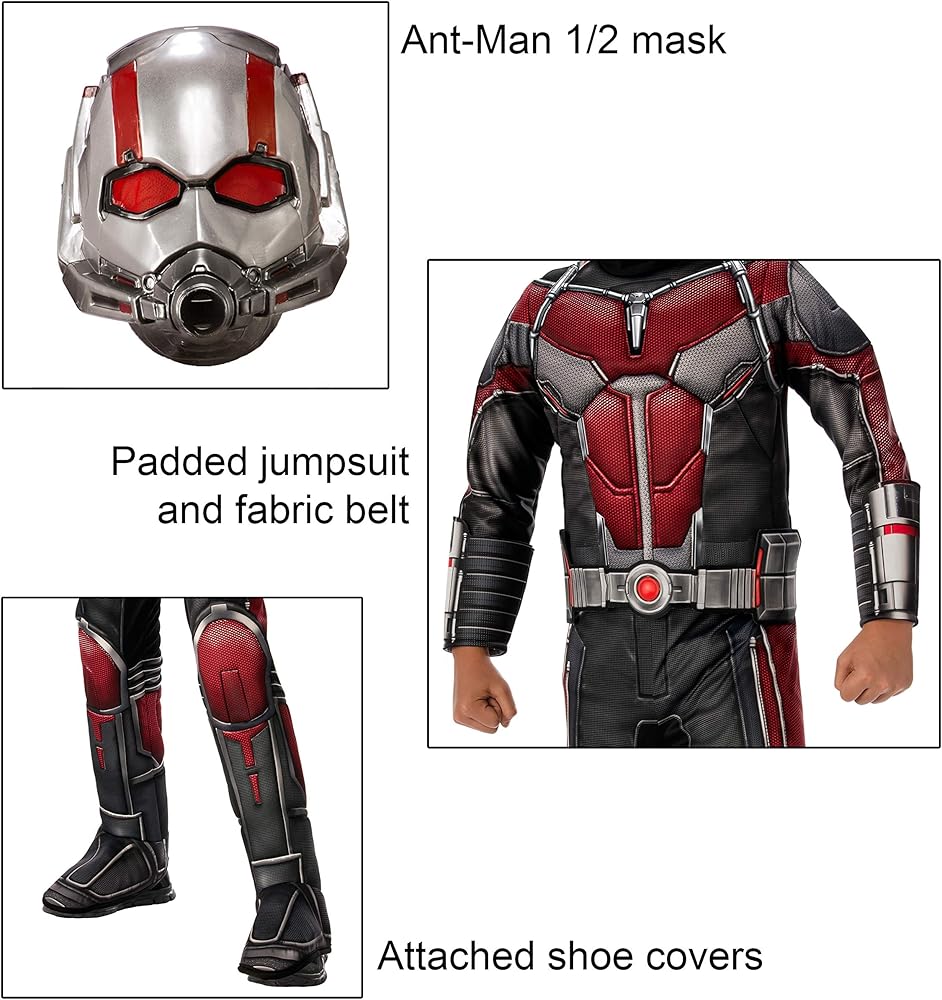 بدلة تنكري فاخرة مبطنة للأطفال من Ant-Man مع حزام قماشي وقناع مرفقين