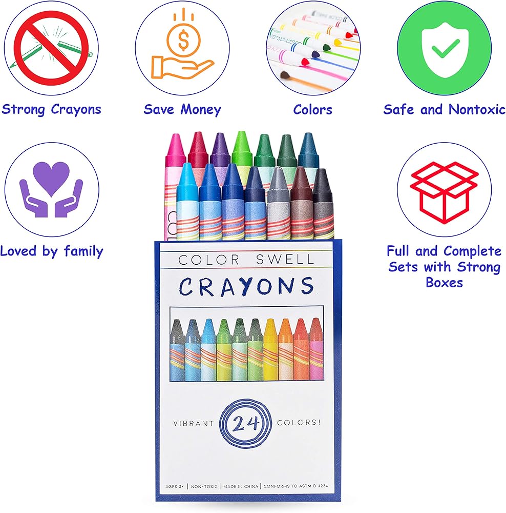 CRAYONS ARE SAFE, DURABLE & STORAGE FRIENDLY All Color Swell Crayon Bulk Sets are nontoxic, conform to ASTM-D4236 standards, and have sturdy individual boxes for easy storage. TEACHERS LOVE our crayons for home art projects, class packs, and students for their trusted durability