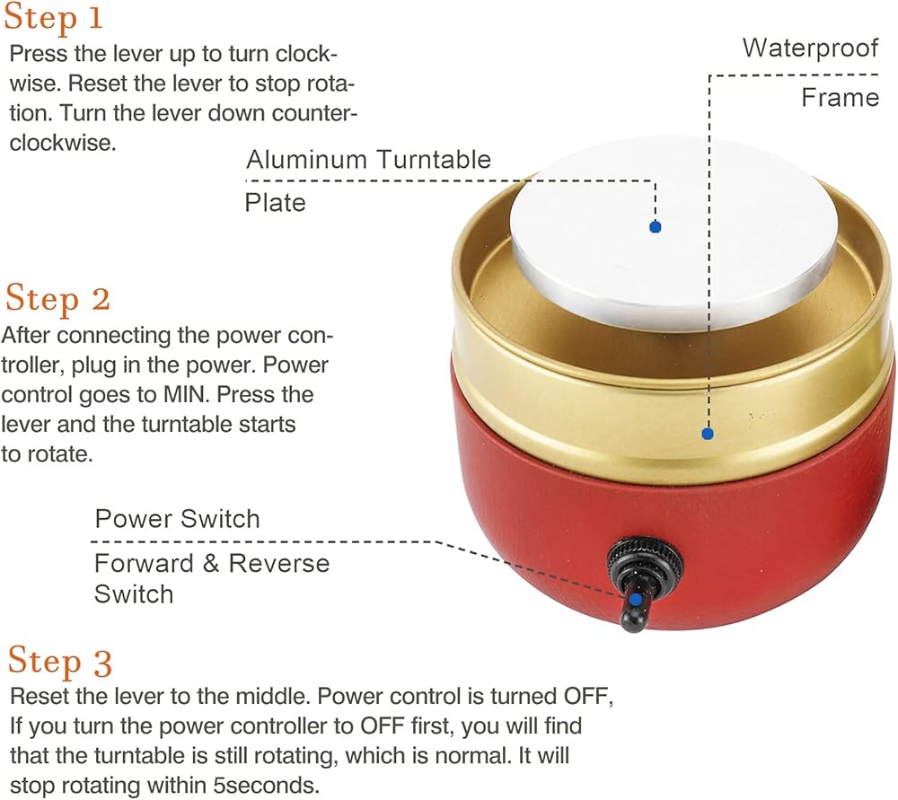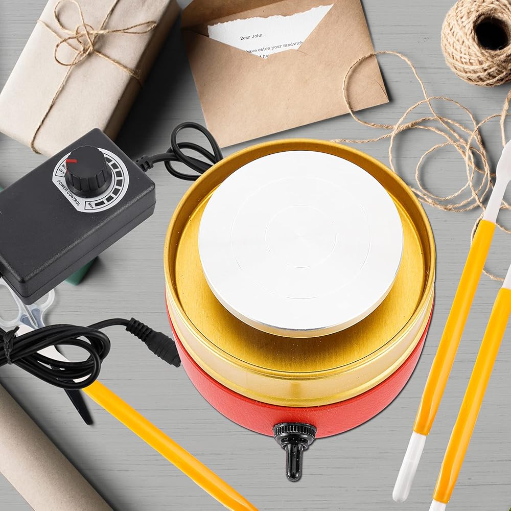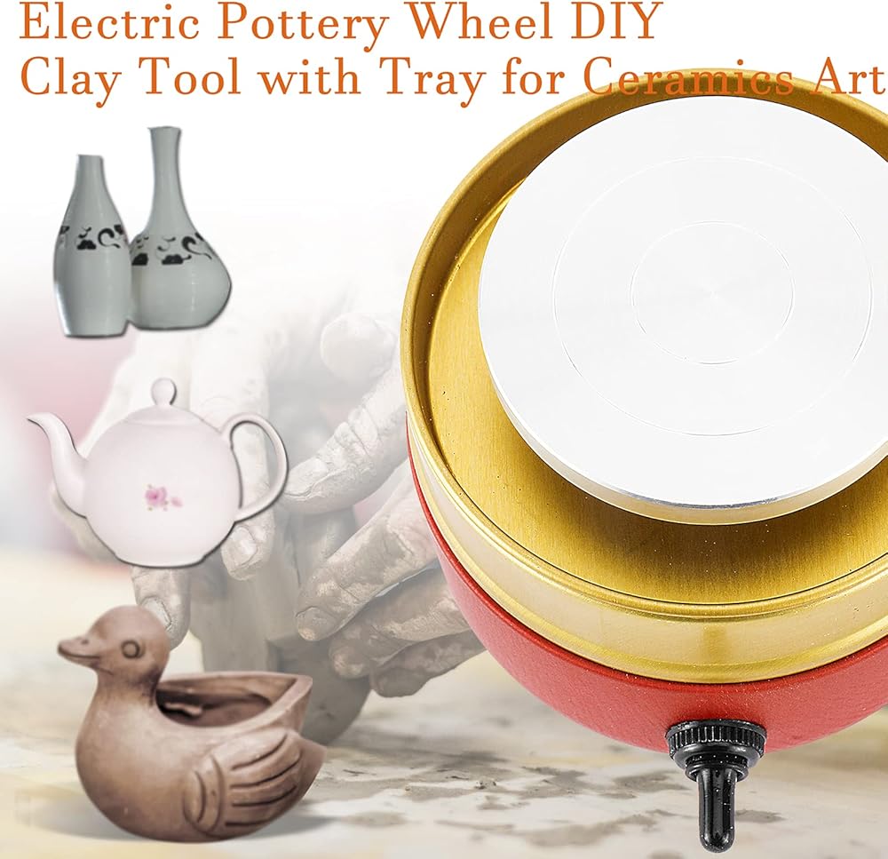 【عالية الجودة والأمان】عجلة الفخار الصغيرة مصنوعة من جسم معدني وقرص دوار من سبائك الألومنيوم. إن تطبيق مفتاح الحماية من التسرب الموجود في الجزء السفلي من الماكينة يمكن أن يوفر سلامتك وله تأثير جيد في الاحتفاظ بالطين.