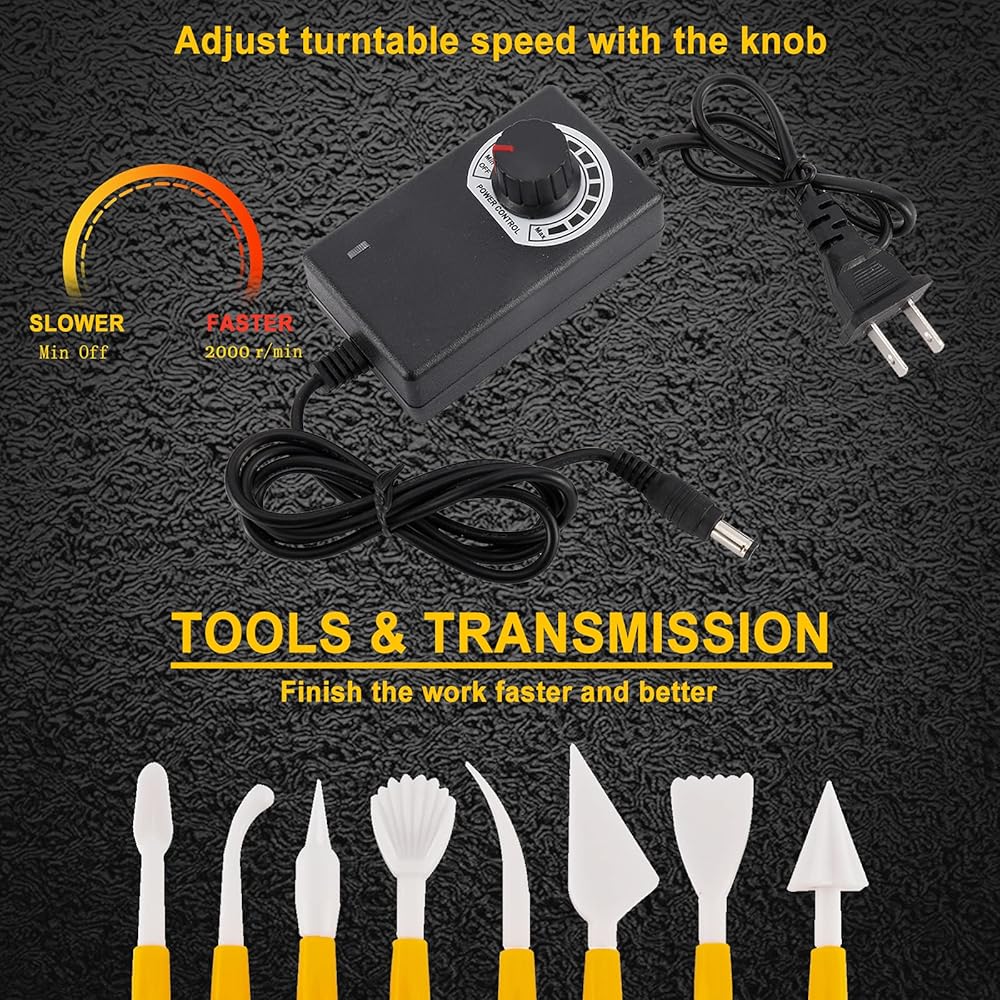 【محرك قوي وضجيج منخفض】تعتمد عجلة الفخار الصغيرة الخاصة بنا على محرك عالي الجودة، وسرعة الدوران 0-1500 دورة/الدقيقة. سوف تتيح لك الضوضاء المنخفضة والسرعة المستقرة العمل بسهولة. ما عليك سوى تغيير السرعة باستخدام المقبض، لتحصل على التحكم الكامل في عملك.