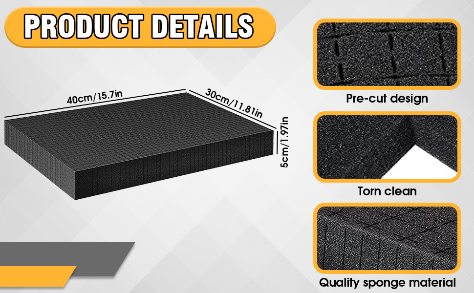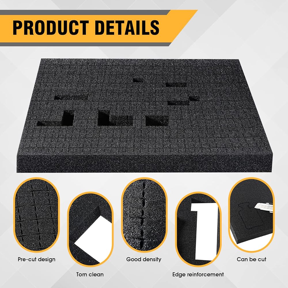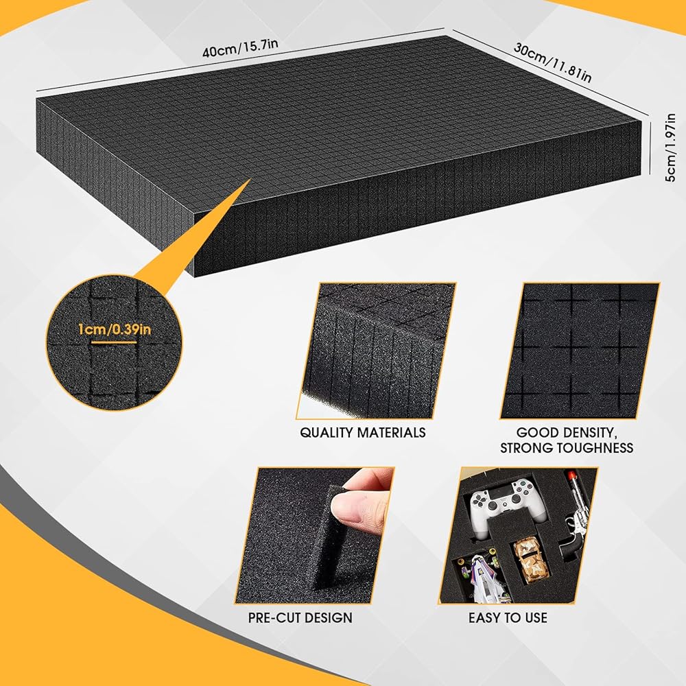 【مصبوب حسب الطلب لمنتجك】--كل حشوة إسفنجية لصناديق الأدوات تقريبًا 40 × 30 × 5 سم/ 15.7 × 11.81 × 1.97 انش وهناك بعض الشبكات المربعة المقطوعة مسبقًا بحجم 1 × 1 سم/ 0.39 × 0.39 انش من الداخل، والإسفنج متصل ولن يسقط، لذلك يمكنك الاسترخاء والاستمتاع بالدقة في كل مرة!