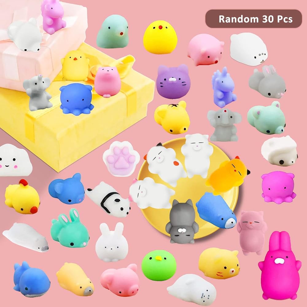 لعبة سكويشيز سكويشي، عشوائية 30 قطعة من ألعاب موتشي سكويشي لحفلات الأطفال، ألعاب كاواي سكويشيز لتخفيف التوتر والقلق لجوائز الفصل الدراسي، هدية عيد ميلاد، حشو حقيبة جودي، حشو بيض عيد الفصح