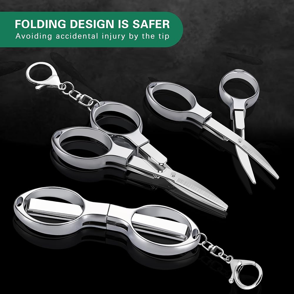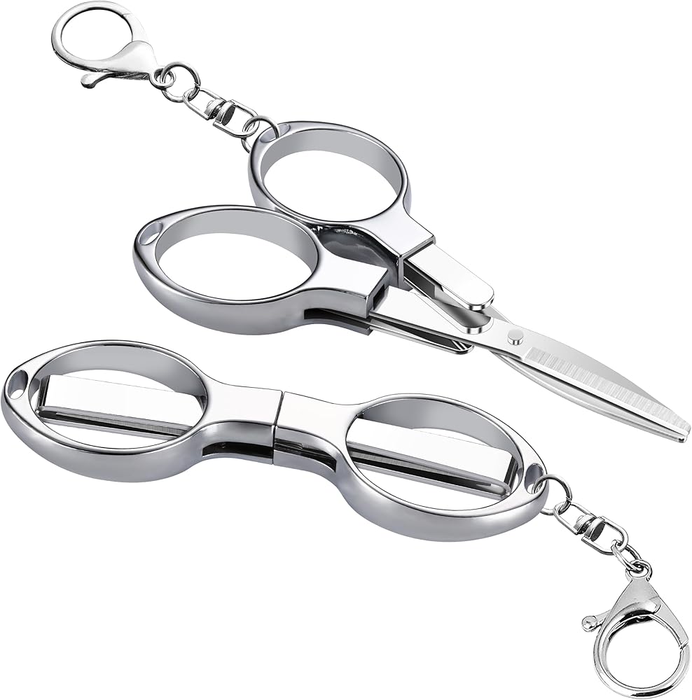 مقص قابل للطي، قطعتان من مقصات سلسلة المفاتيح، مقص رحلات سفر آمن ومحمول، قاطع تلسكوبي من الفولاذ المقاوم للصدأ يستخدم للمنزل والمكتب وصيد الأسماك