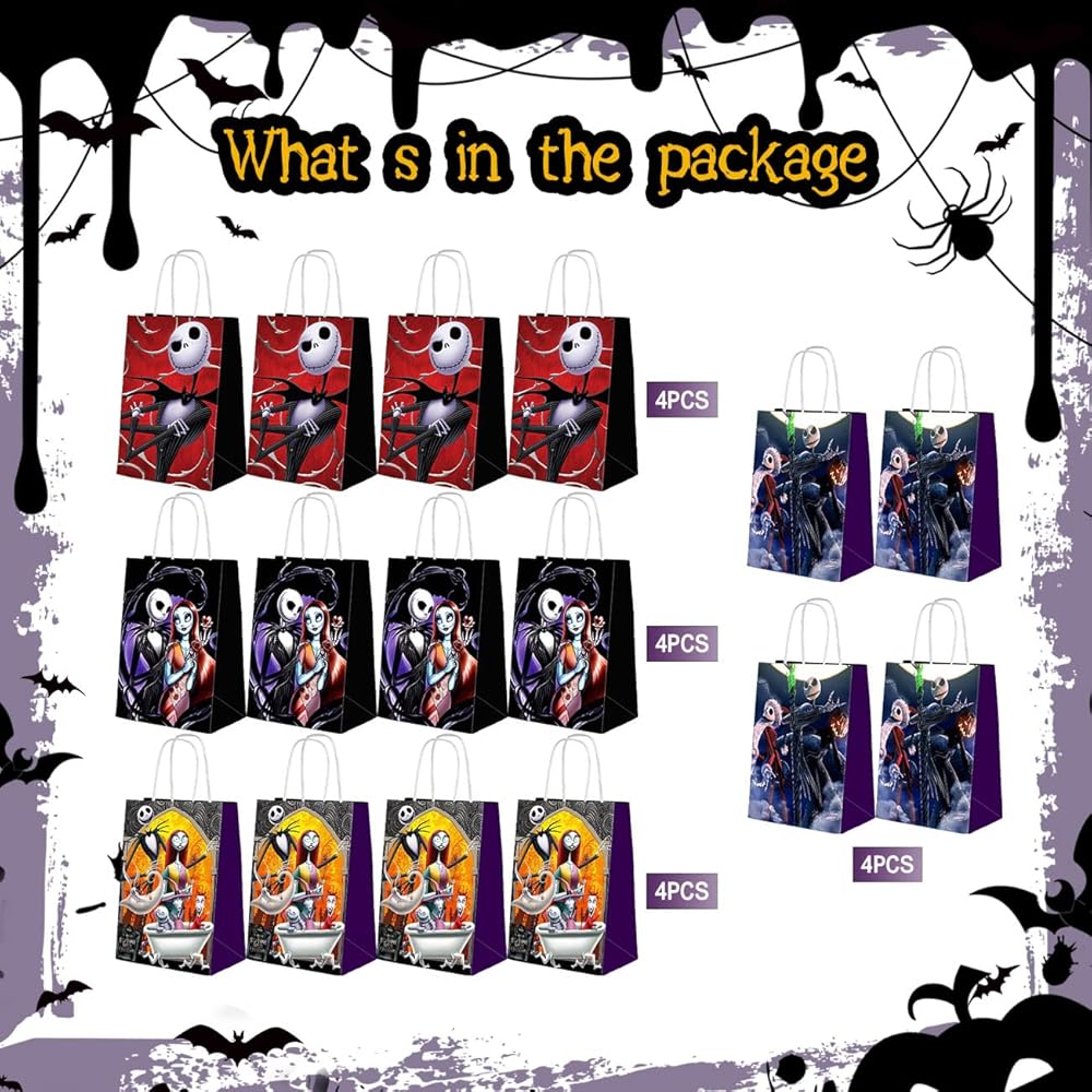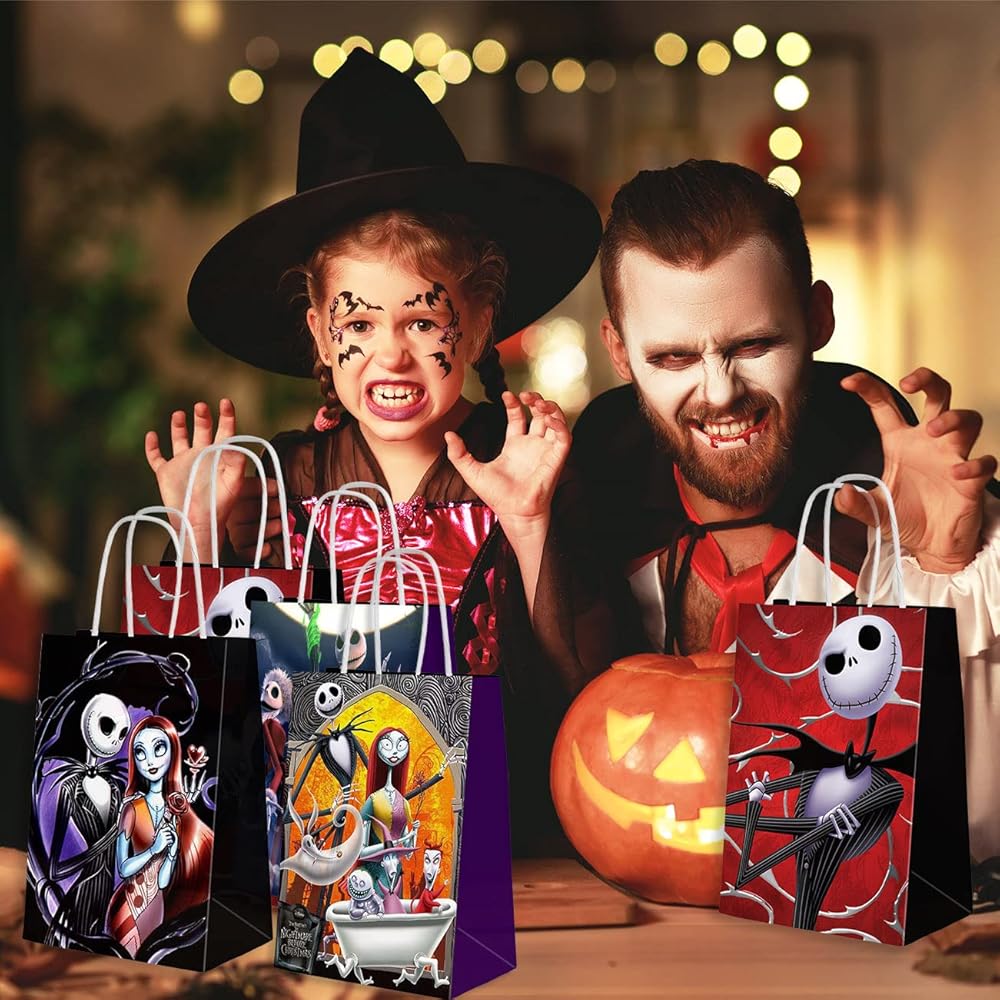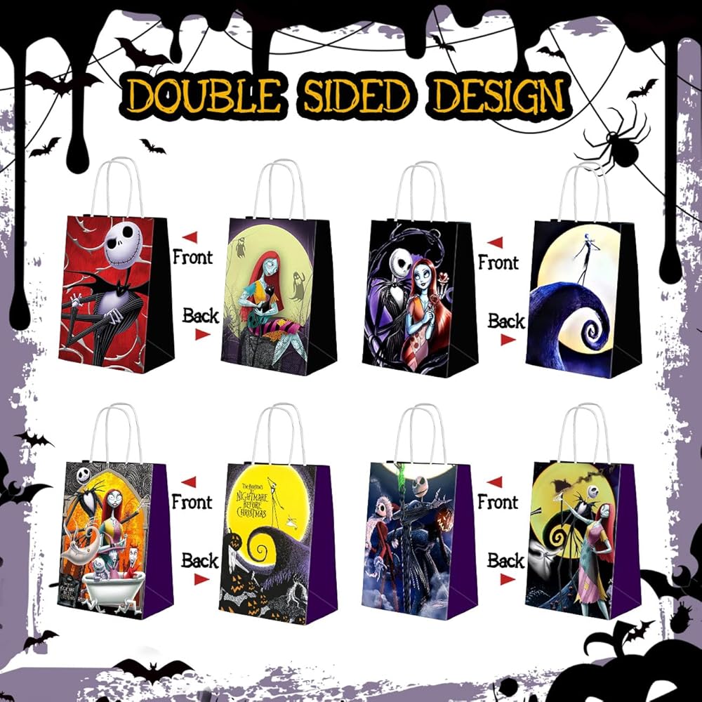🎄جودة عالية: حقائب الحفلات الورقية هذه مصنوعة من ورق عالي الجودة، مما يعني أكياس هدايا قوية ومتينة لن تتمزق عند التعامل معها. قوية بما يكفي لحمل الألعاب والحلوى وأي هدايا أخرى. سوف تحب حقائب هدايا حفلات ذا نايتمير التي يمكن أن تخلق جوًا جميلًا لحفلاتك.