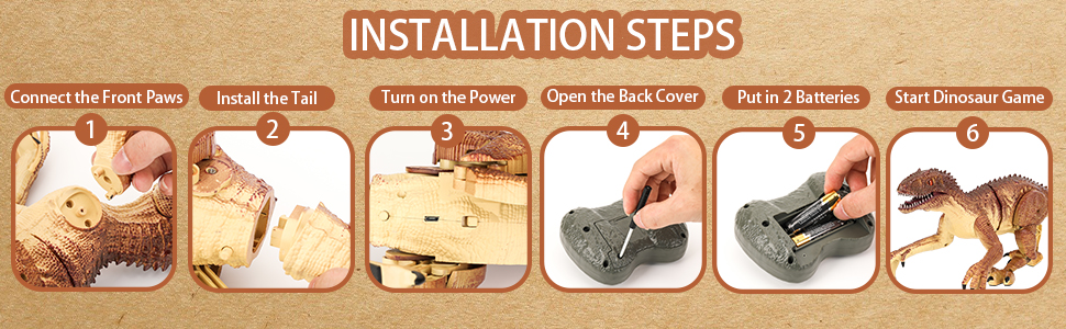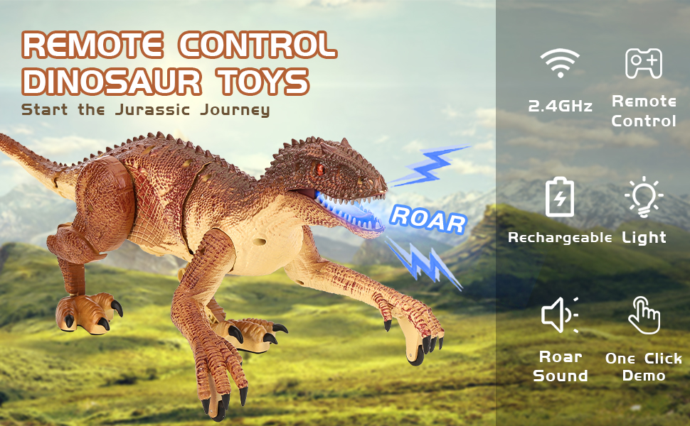 تصميم دينو مبتكر: من أجل تلبية خصائص المشي للفيلوسيرابتور، تم ترقية الكفوف الأمامية بعجلات للمساعدة في الحركة للأمام وتم تجهيز الكفوف الخلفية بوسادات ناعمة غير قابلة للانزلاق. ذيل الديناصور ليس فقط قابلاً للاهتزاز ولكن أيضًا قابل للفصل لسهولة التخزين. أضافت وحدة التحكم عن بعد تعليمات السهم وقمت بتثبيت البطارية المتينة القابلة لإعادة الشحن داخل الديناصورات لتوجيه لعب الأولاد بسهولة لأكثر من ساعتين