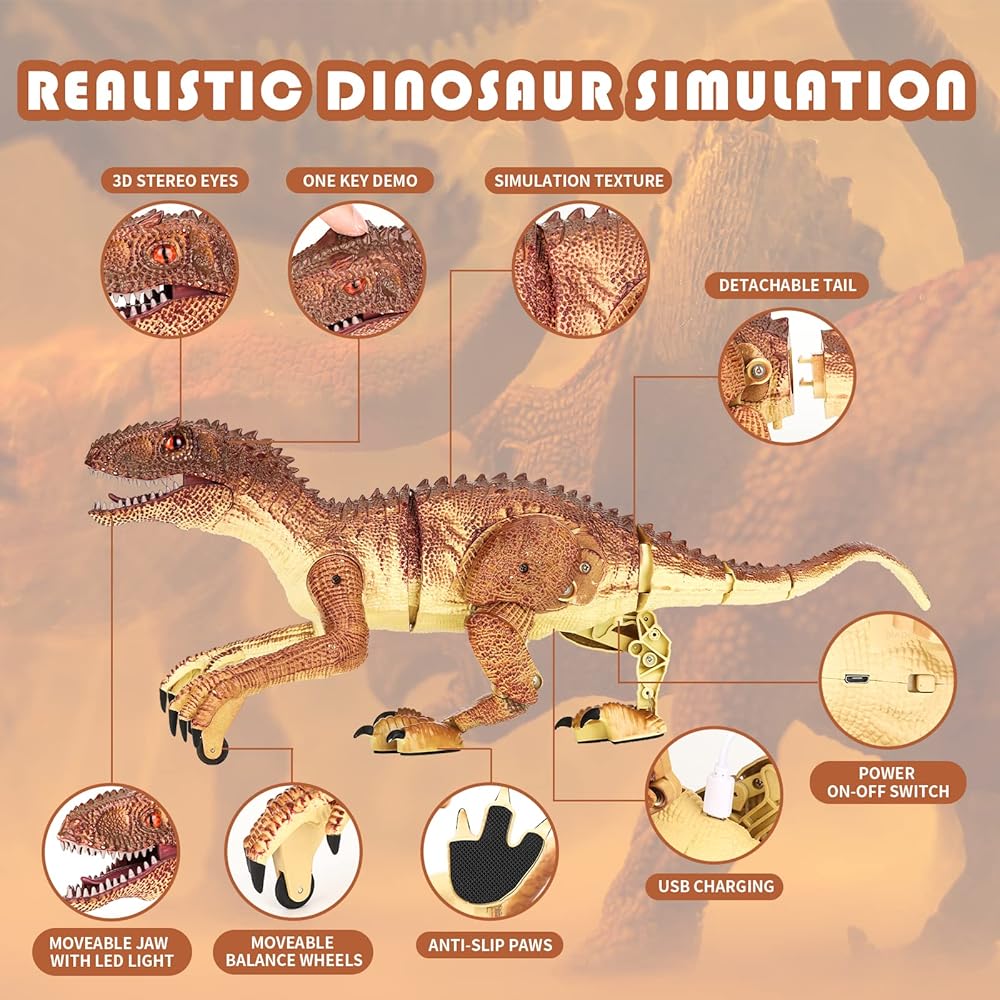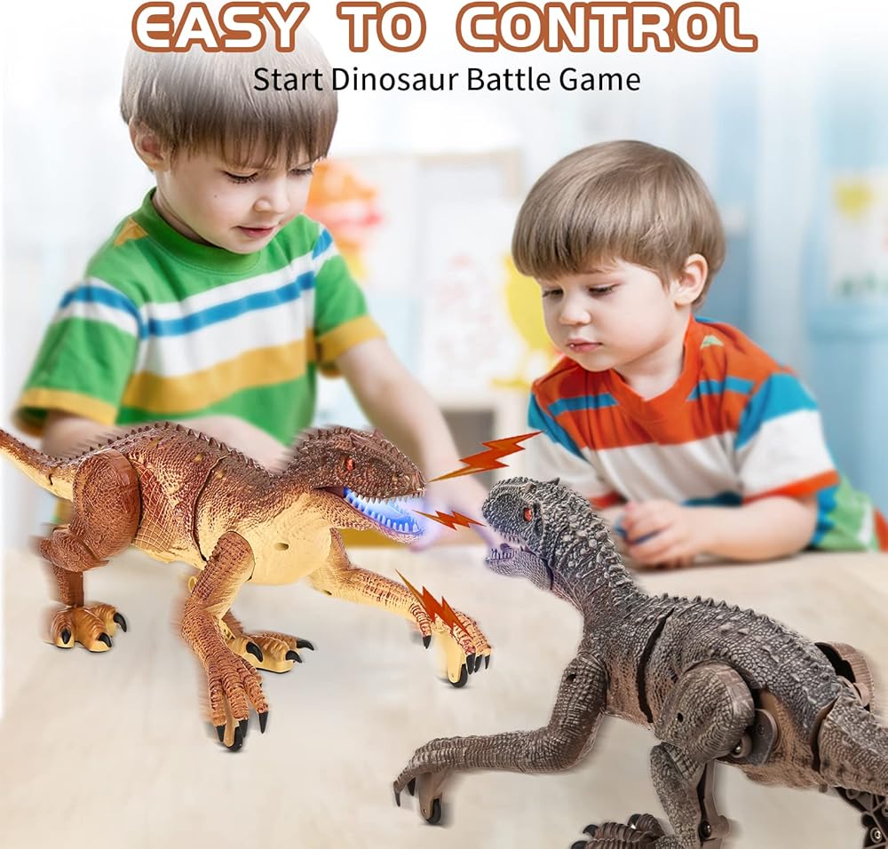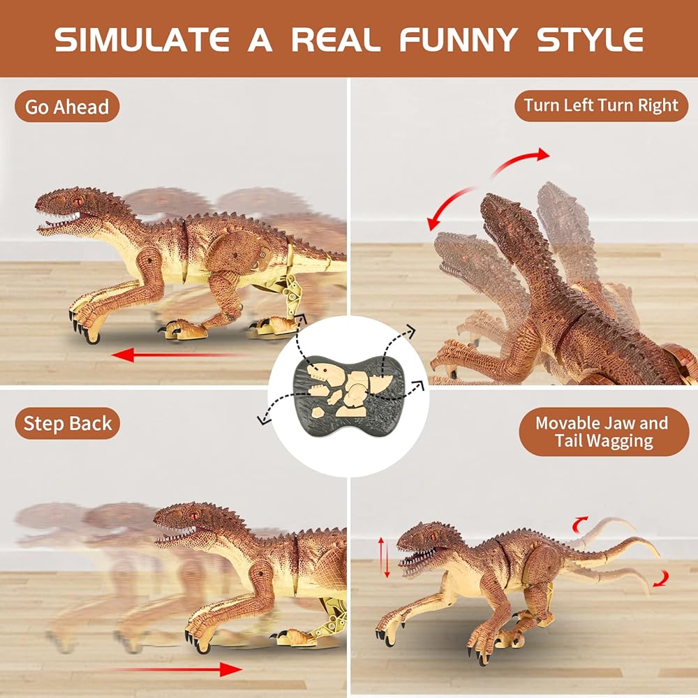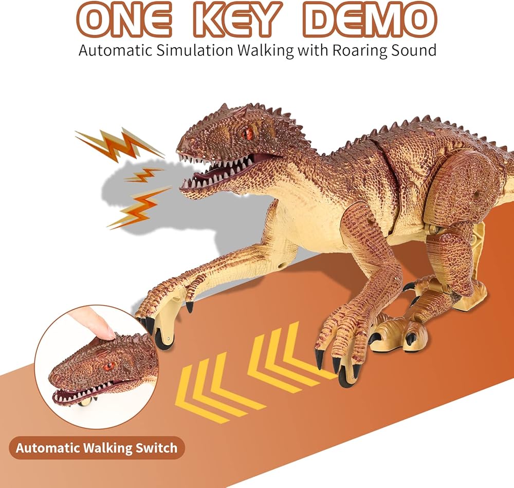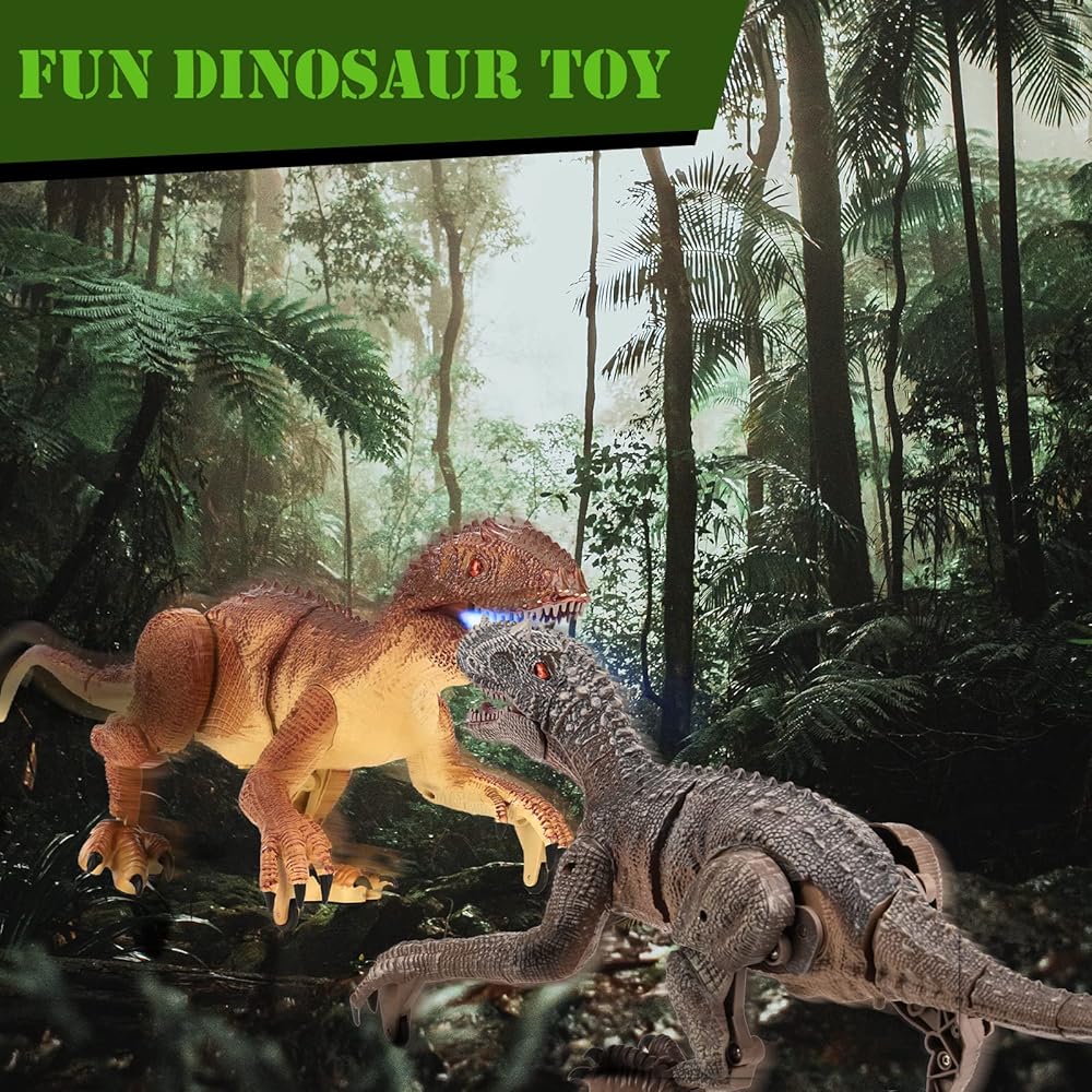 لعبة ديناصور للتحكم عن بعد من TQQFUN، لعبة دينو كبيرة الحجم، ألعاب ديناصور المشي الكهربائية للأطفال، روبوت فيلوسيرابتور واقعي بتردد 2.4 جيجا هرتز مع صوت هدير وإضاءة للأطفال (بني)