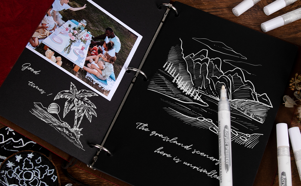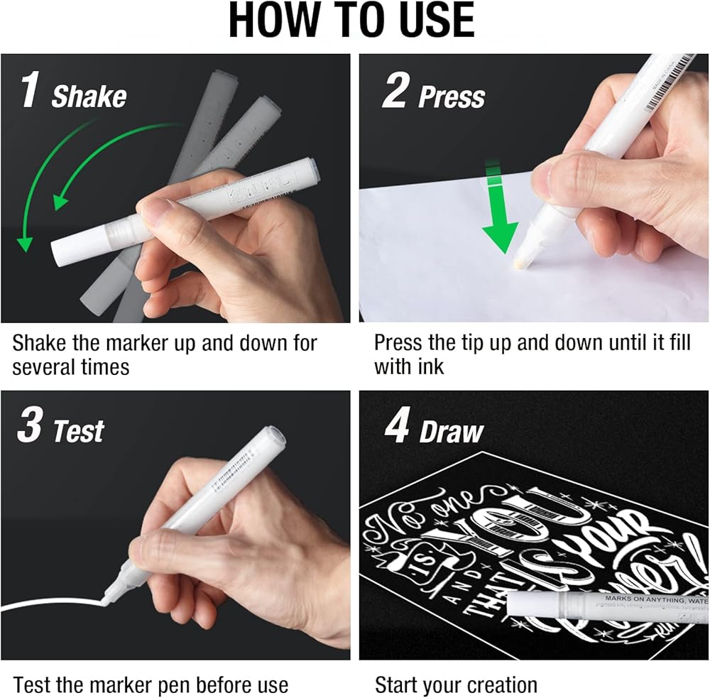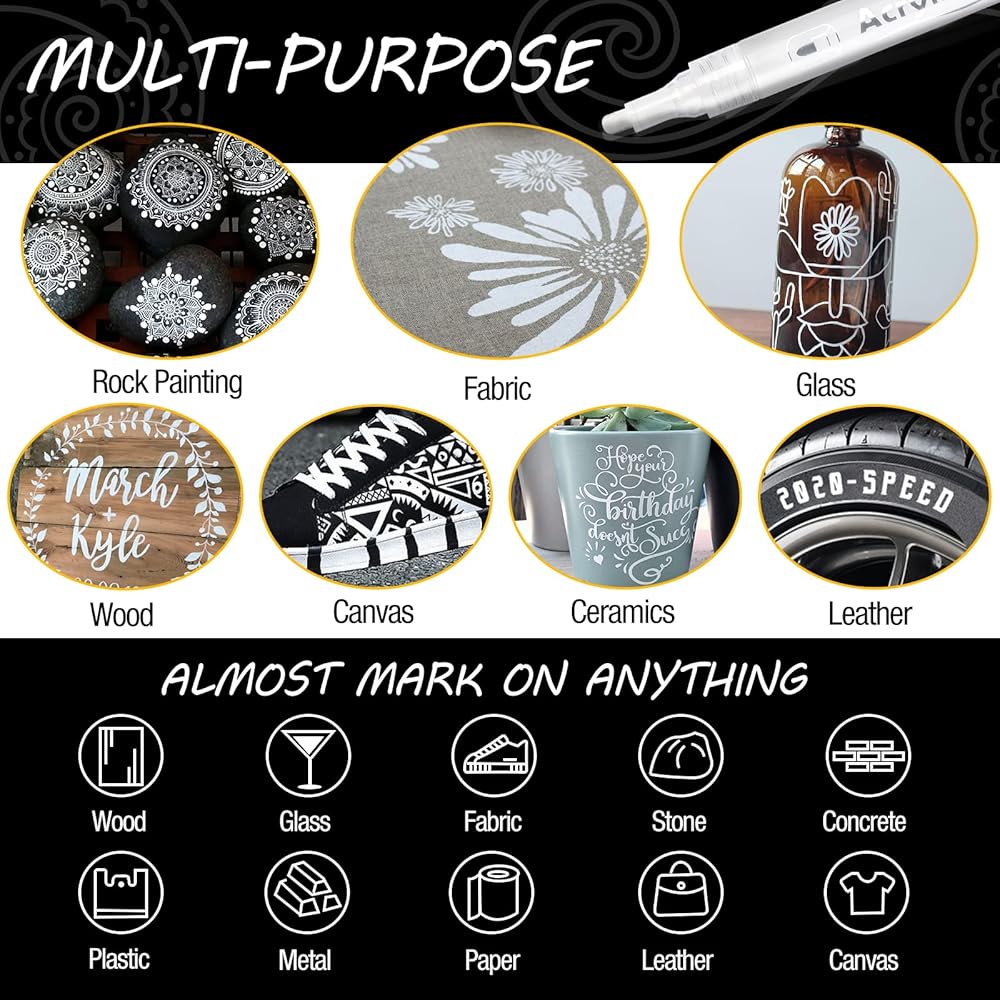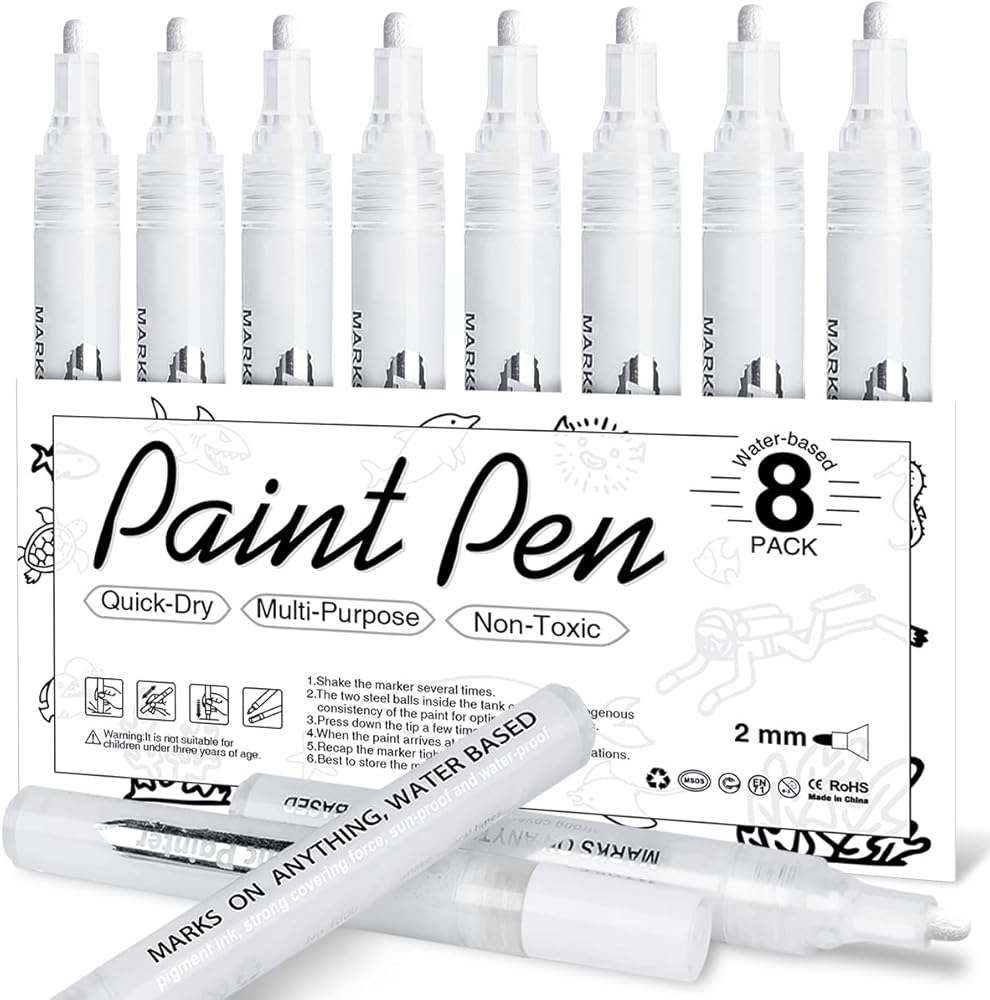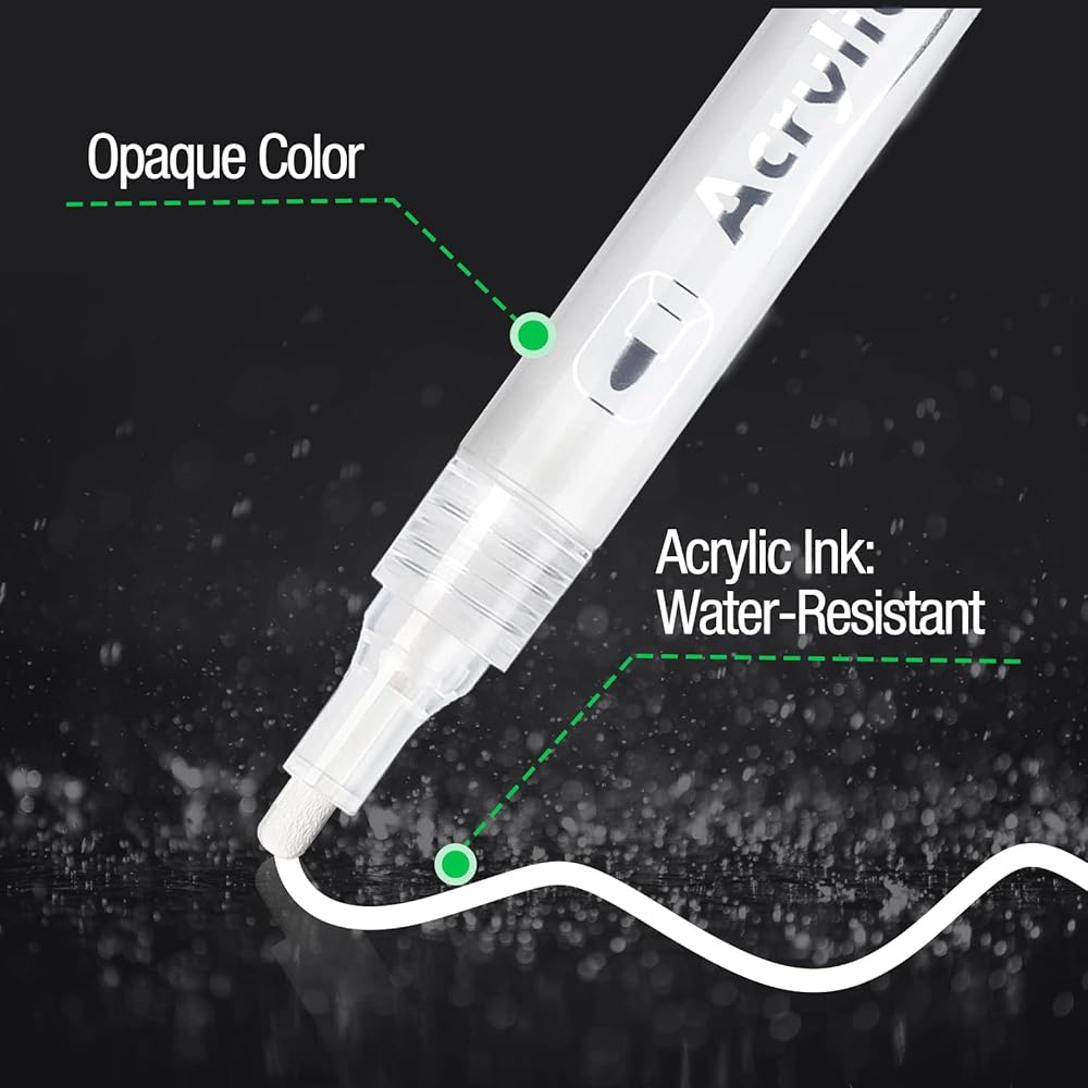 🎨[تأثيرات مثالية على السطح] اصنع عالمك الحيوي: مثل الحجر، استنسل الخشب، الكتابة على الجدران، لوازم الصخور، الحرف الفنية، تزيين سبورة الزفاف، النظارات، إنشاء الملصقات، طلاء تزيين اليقطين. قلم أبيض للفن، أقلام طلاء أكريليك بيضاء ذات نقاط دقيقة مثالية للفنانين والطلاب والمراهقين والبالغين
