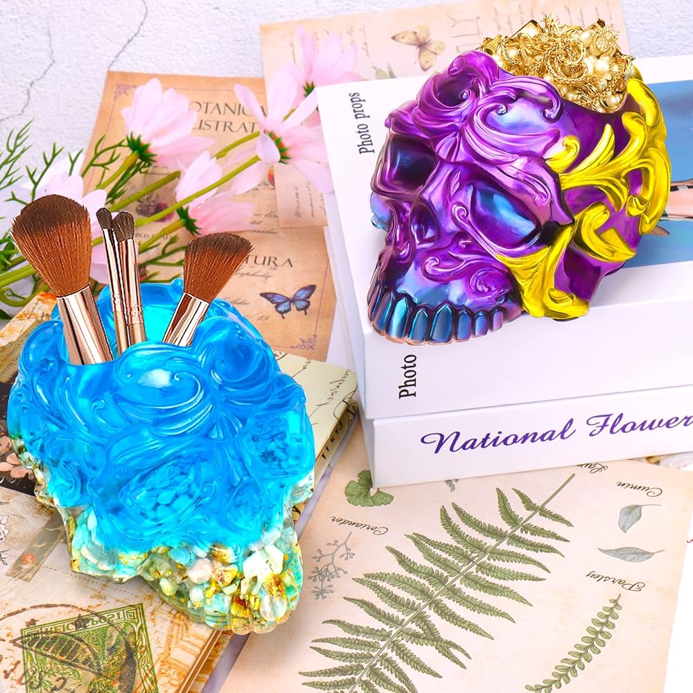صناعة يدوية سعيدة: قالب الراتنج الجمجمة الخاص بنا يمنحك مساحة كافية للخيال، وتمنح اللعب الكامل لخيالك لمنتجات متنوعة يمكنك إضافة الزهور المجففة، والطلاء اللؤلؤ، ومسحوق الميكا، إلى قالب الراتنج لجعل المنتج النهائي أكثر تميزًا وجمالاً