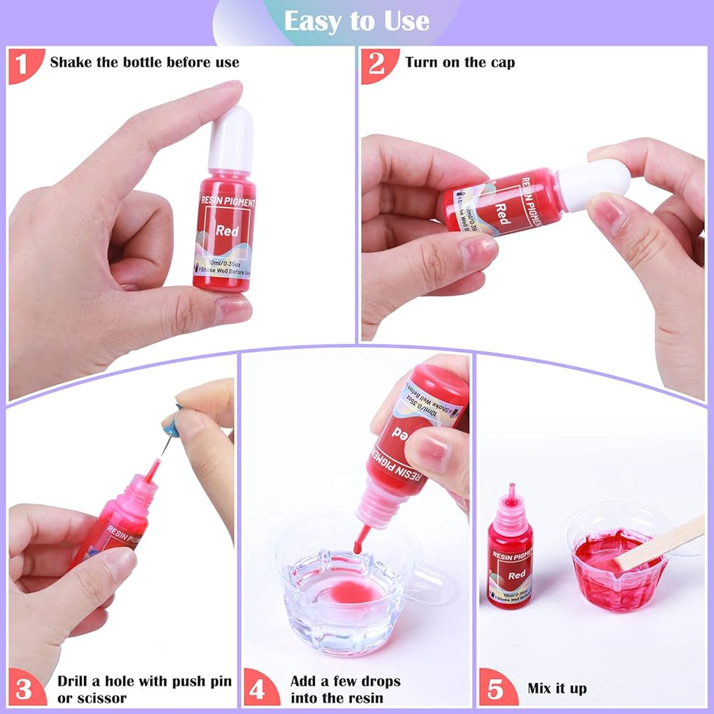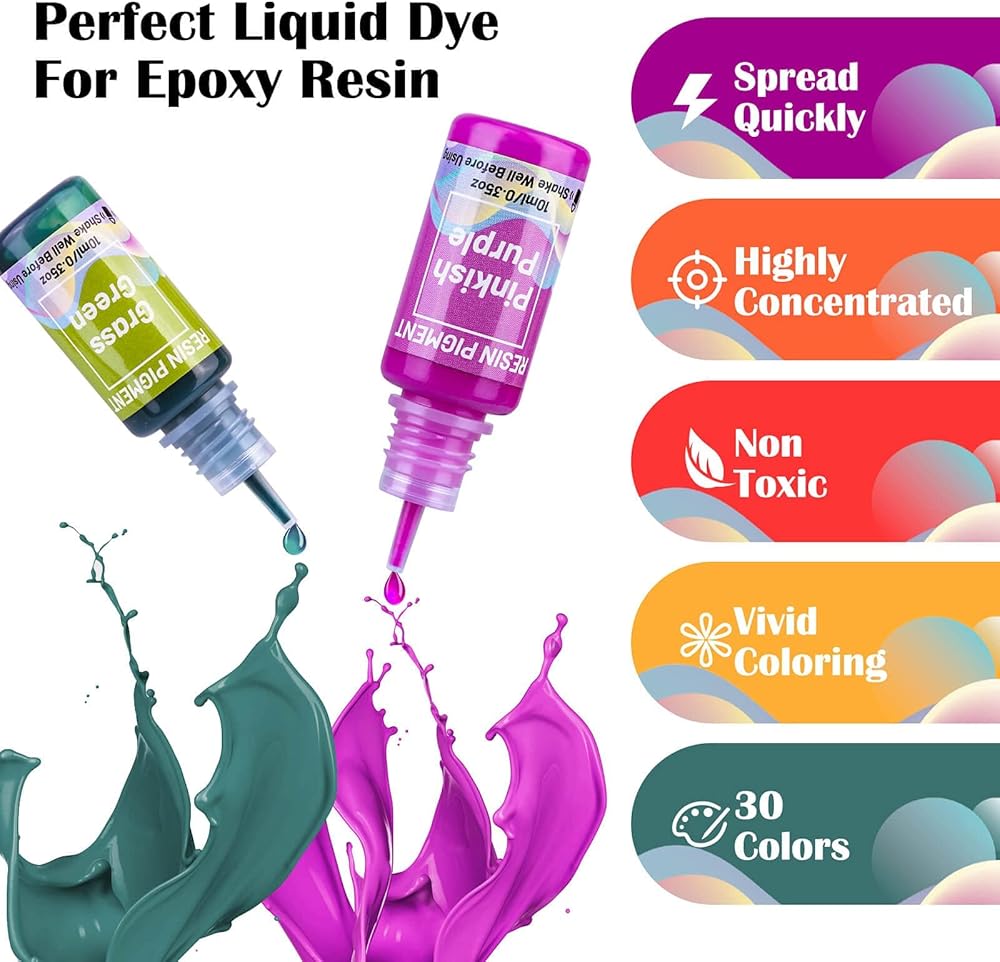 🌈【 تركيز عالي وآمن】 على الرغم من أن صبغة راتنج الإيبوكسي هي صبغة سائلة، إلا أنك ستندهش من تأثير التلوين. قطرة واحدة يمكن أن تقطع شوطًا طويلاً دون العبث بقوام الراتنج! ألوان الراتنج الخاصة بنا غير سامة وغير مهيجة وآمنة وموثوقة. صبغة الراتنج الملونة هي الخيار الأفضل لتلوين الراتنج!