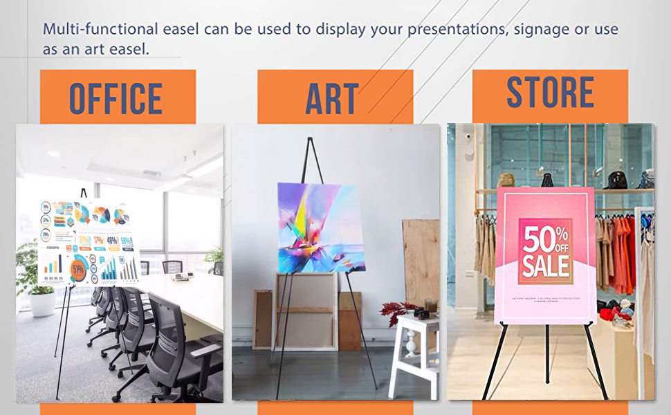 متعدد الاستخدامات هذا الحامل مثالي لعرض مجموعة من المواد، بما في ذلك اللوحات القماشية والملصقات والسبورات البيضاء والمزيد. كما أنه مناسب للاستخدام الداخلي والخارجي، مما يجعله حلاً متعدد الاستخدامات لأي موقف.