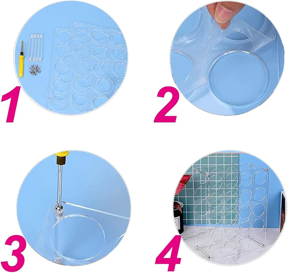 رف واحد، العديد من الاستخدامات. يعمل هذا الحامل كمخزن لفافة الفينيل، وتخزين اللوحة الماسية، ومنظم لأي شريط، أو غلاف هدايا، أو ورق تغليف في مجموعتك، وحتى ديكور للغرفة لمنظمي ورفوف التخزين من الأكريليك الأسود والشفاف.