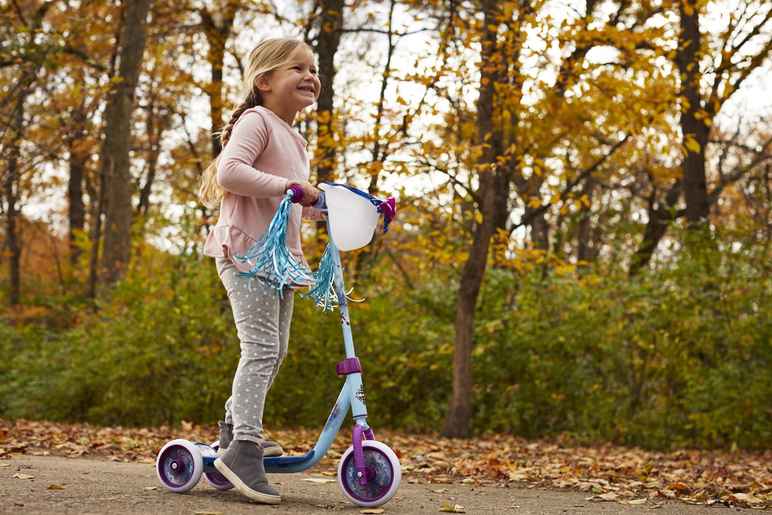 ثلاث عجلات تعني المزيد من التوازن ورسومات ديزني فروزن السا تعني المزيد من المرح! سكوتر ما قبل المدرسة هذا مثالي للأعمار من 2 إلى 4 سنوات مع الحد الأدنى لارتفاع 37 انش. ضع الألعاب المفضلة وبعض الوجبات الخفيفة في سلة المقود المريحة للغاية. ستتألق الشرائط الجميلة في الرياح بينما يركب طفلك على الرصيف. السطح عريض حتى يتمكن طفلك من وضع قدميه عليه بشكل مريح. عجلة ثالثة على السكوتر مثالية للراكبين المبتدئين. سيشعرون بمزيد من الثقة أثناء الركوب وستحظى براحة البال. الإطار الستيل المتين مدعوم بضمان محدود مدى الحياة. هافي، نحن نجعل المرح!