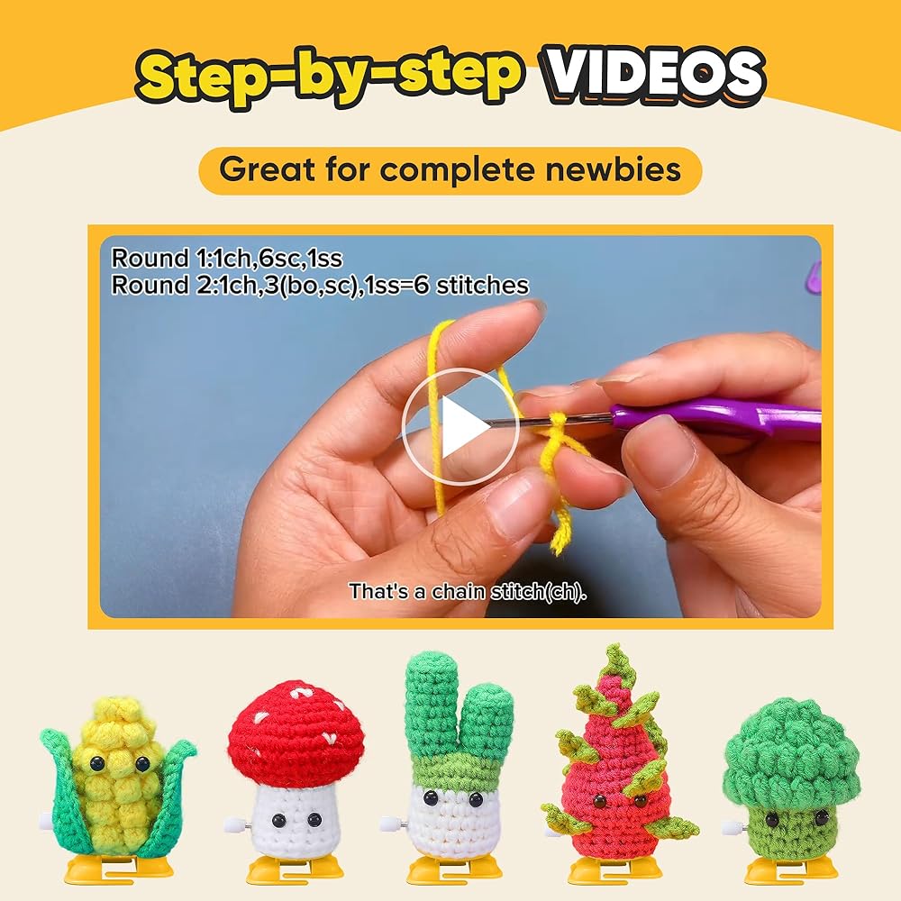 مجموعة تاكوسو كروشيه للمبتدئين - مجموعة أدوات الكروشيه للمبتدئين مع دروس فيديو خطوة بخطوة، تعلم مجموعات الكروشيه للبالغين والأطفال، لوازم الحياكة DIY، 5 عبوات من عائلة الفواكه