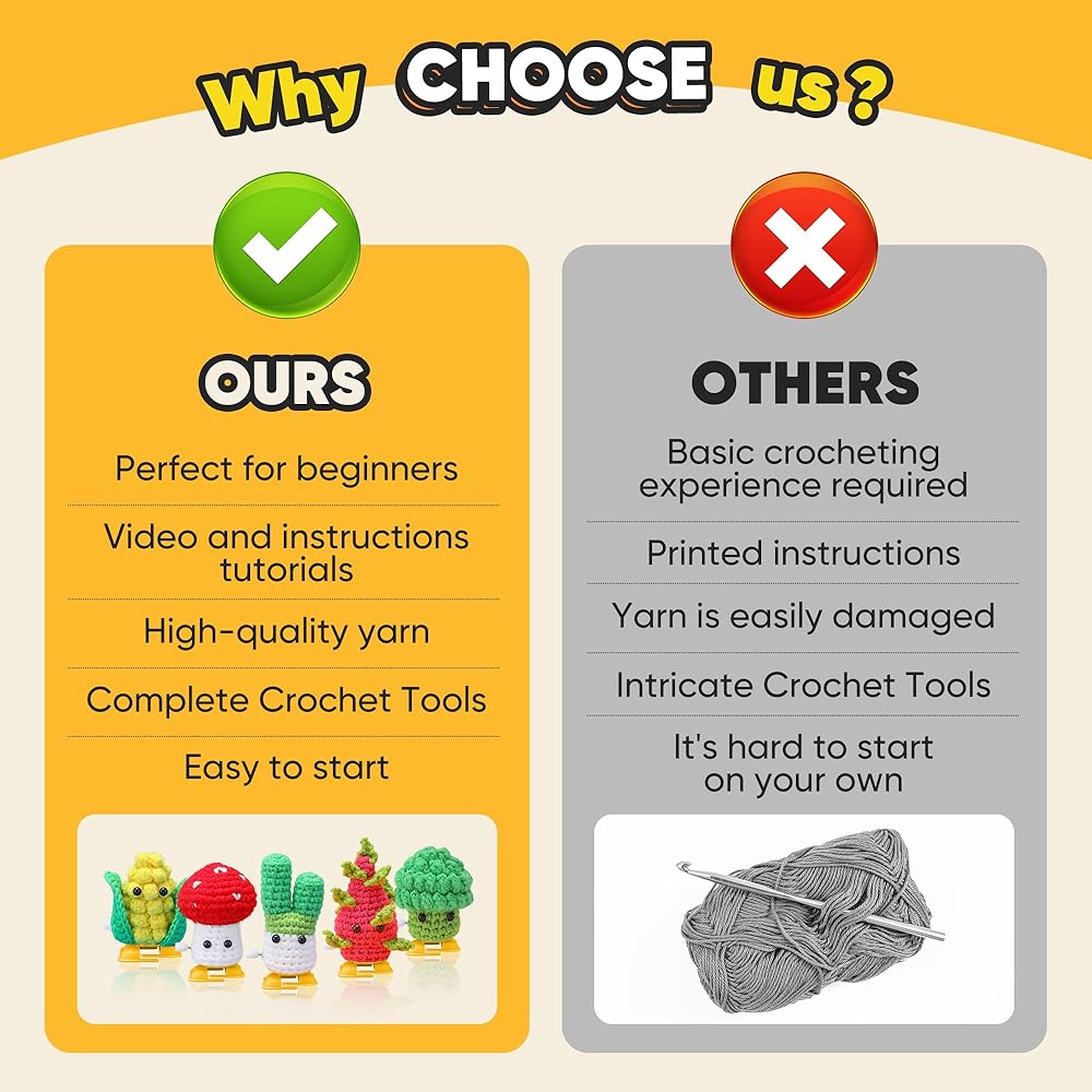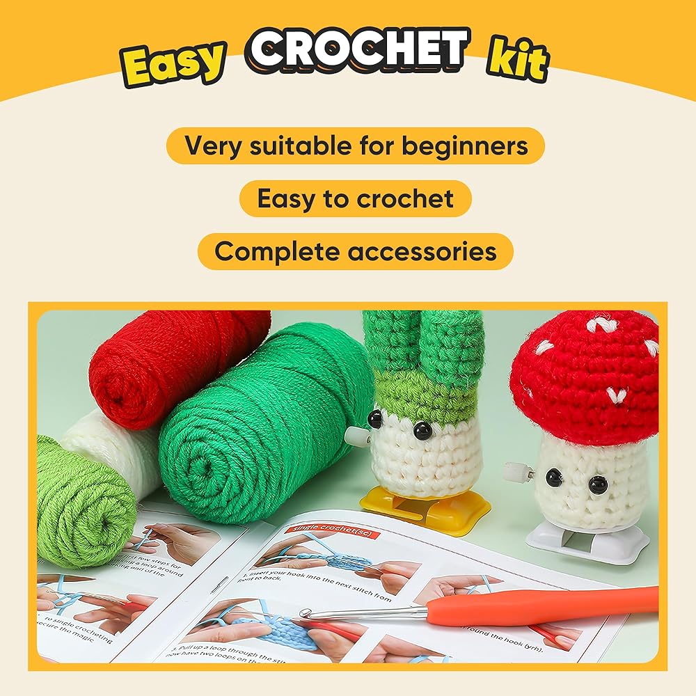 • 🧶 مجموعة الكروشيه للمبتدئين: مجموعة الكروشيه هذه مثالية لأولئك الذين يبدأون من الصفر؛ نحن نقدم فيديو تعليمي شامل يسهل فهمه ومتابعته؛ بالإضافة إلى المواد الملائمة للمبتدئين، قمنا أيضًا بتضمين قطعة كروشيه تم البدء فيها بالفعل.