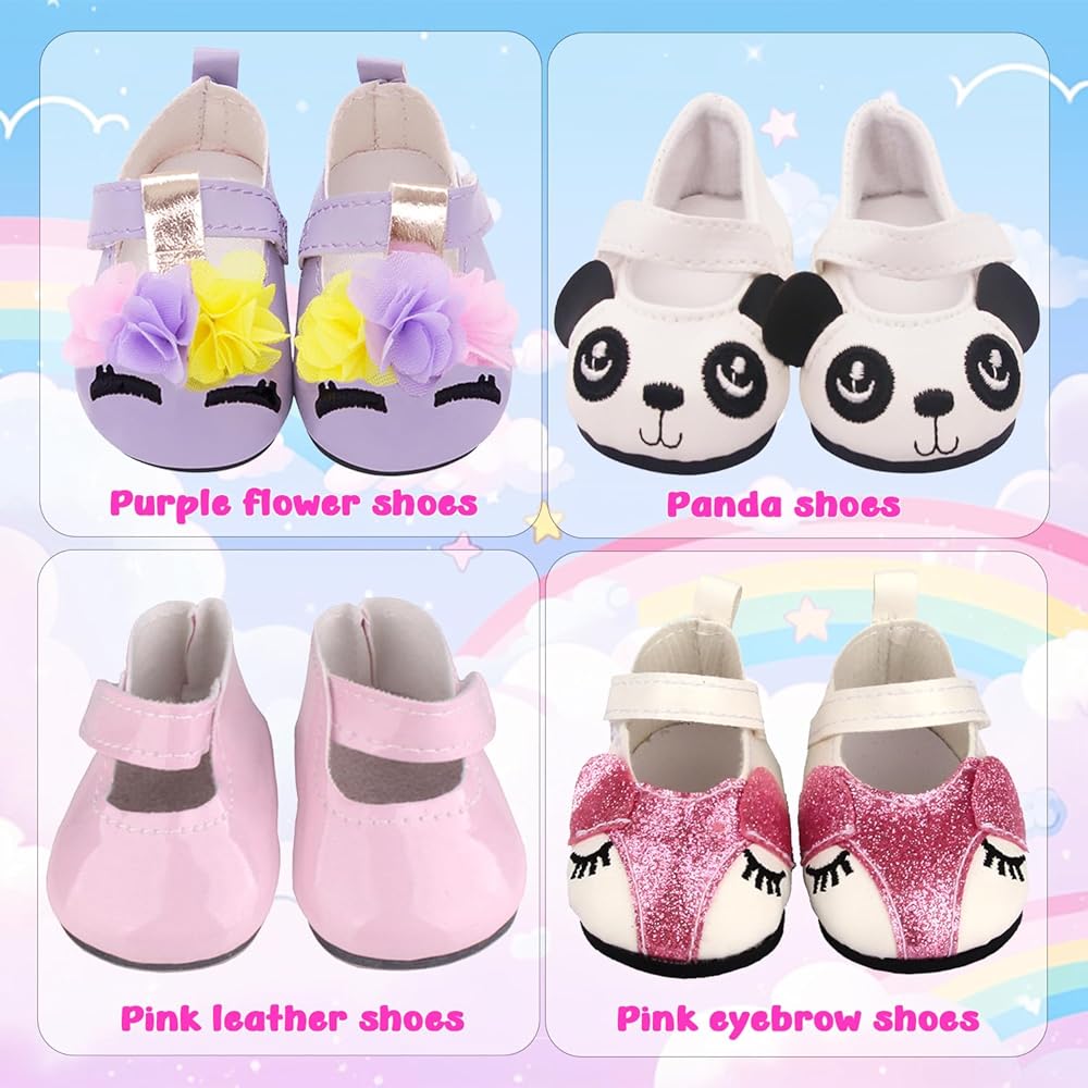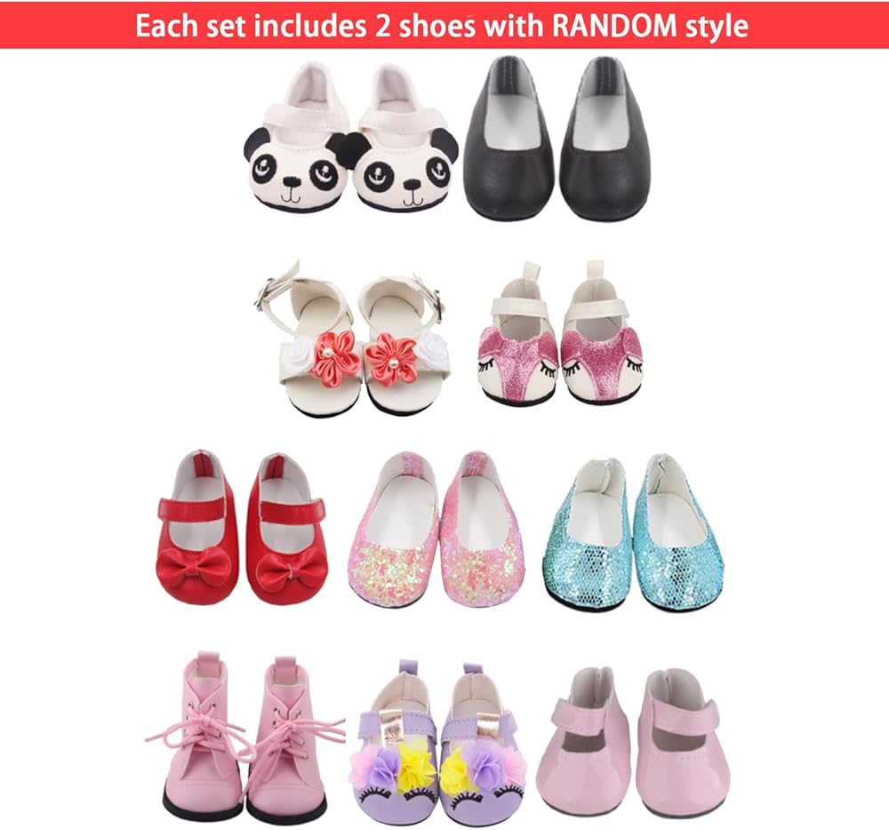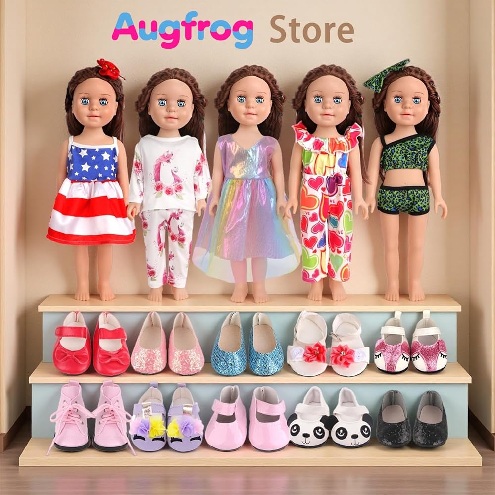 مواد عالية الجودة وموثوقة - ملابس الدمى AugFrog مصنوعة من مواد عالية الجودة، مريحة وناعمة، ملمس ناعم، قابلة لإعادة الاستخدام وقابلة للغسل، صديقة لبشرة الأطفال. أحذية الدمى ذات نوعية جيدة، وأنماط مختلفة من الأحذية مناسبة للدمى في مناسبات مختلفة.