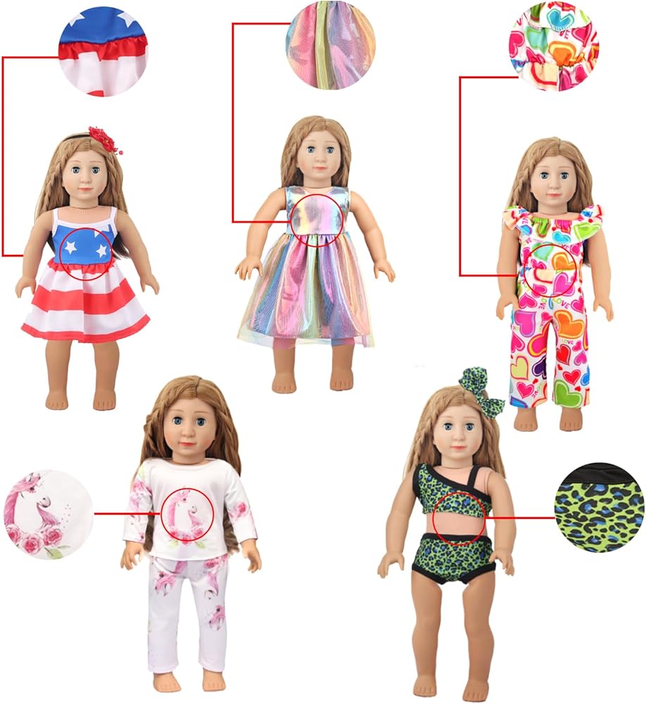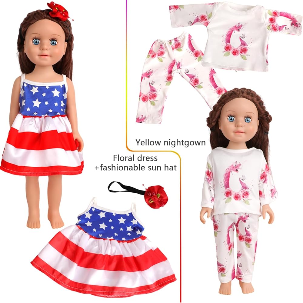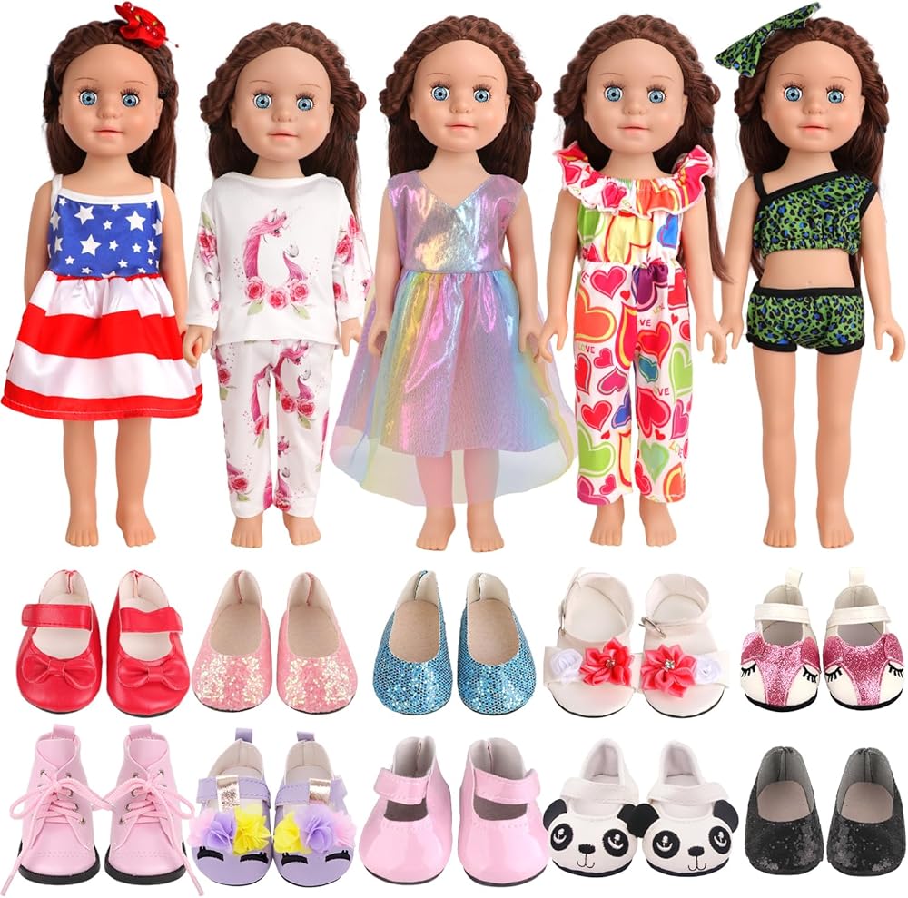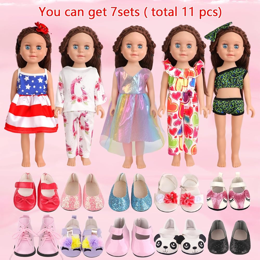 سهلة الملاءمة - ملابس وأحذية الدمية الكلاسيكية مقاس 18 بوصة هي مجموعة أساسية من خزانة الدمية، ويمكن للأطفال مطابقة هذه المجموعة مع الملابس والأحذية الأخرى لإثراء مظهر الدمية.