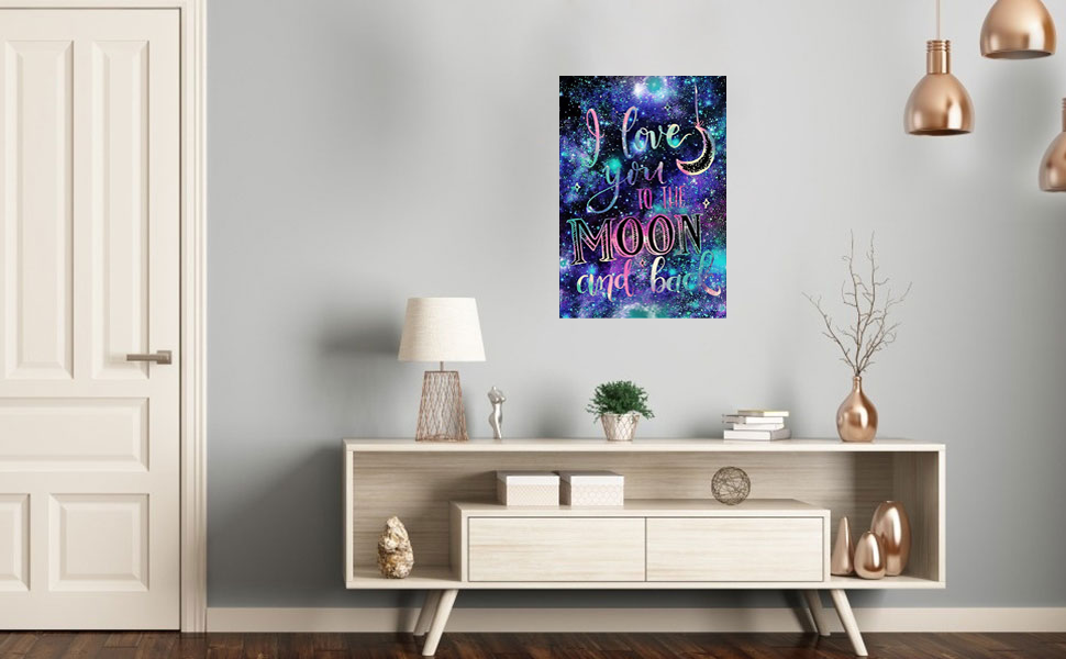 لوحة الماس 5 دي من مجموعات الارقام، لوحات تطريز ماسية مرصعة بحجر الراين الكريستالي لتزيين جدار المنزل، حفر كامل، I Love You to The Moon and Back (J4764XKMY-11.8 × 15.7 انش)