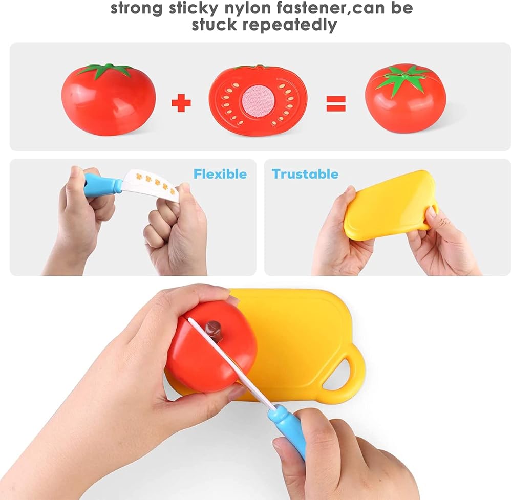 Safety and Quality Assurance - It is made of safe and environmentally friendly materials with smooth edges and will not hurt your hands. When cutting the game,there is a real cutting sound that gives the child a realistic feeling. Bright colors can attract children, children can play farm games, act as buyers and sellers of fruits and vegetables