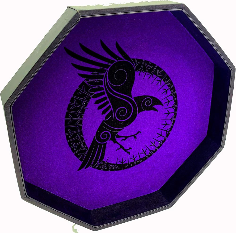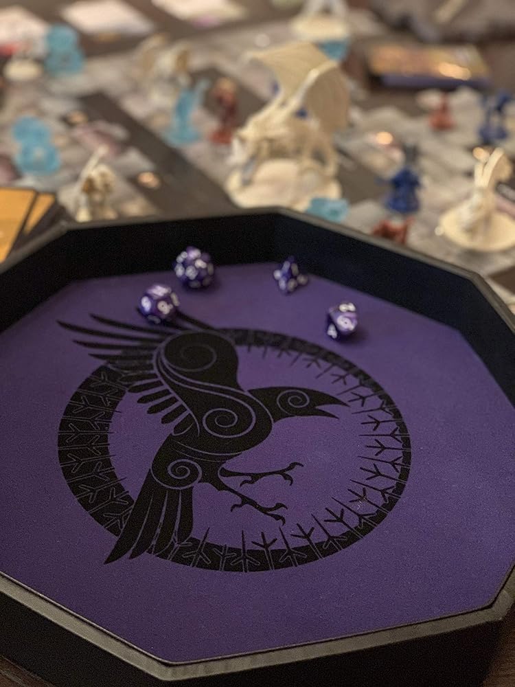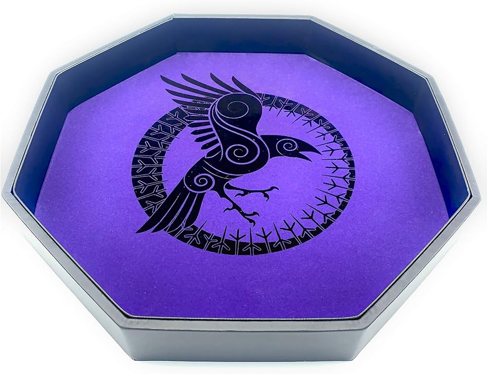 جدران مبطنة لتقليل الضوضاء، غلاف من جلد البولي يوريثين الأسود عالي الجودة. عمل فني رائع من الغراب - عمل فني فريد من نوعه من لاك لاب. لون أسود وأرجواني. صينية نرد ممتازة للتدحرج.