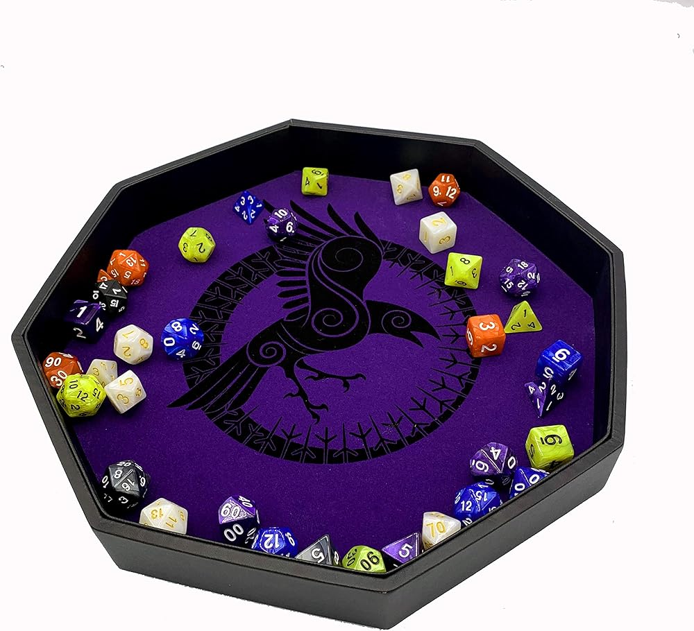 هذه صينية نرد ثمانية الأضلاع ممتازة لعشاق النرد أو لاعب ار بي جي أو سيد الأبراج المحصنة. يمكن استخدامها للعب دور ألعاب النرد مثل دي اند دي (دي ان دي) 3.5، 5e، كول اوف كثولو، شادورون، ستار وورز، وارهامر، مصاص الدماء: ذا كونسيريد وجميع الألعاب الأخرى الموجهة نحو النرد. صينية نرد استثنائية من دي ان دي. سهلة النقل إلى برج النرد. لست مهتمًا بألعاب لعب الأدوار؟ هذه الصواني رائعة لجميع ألعاب النرد بما في ذلك تينزي، فاركل، ليرز دايس، سمها ما شئت.