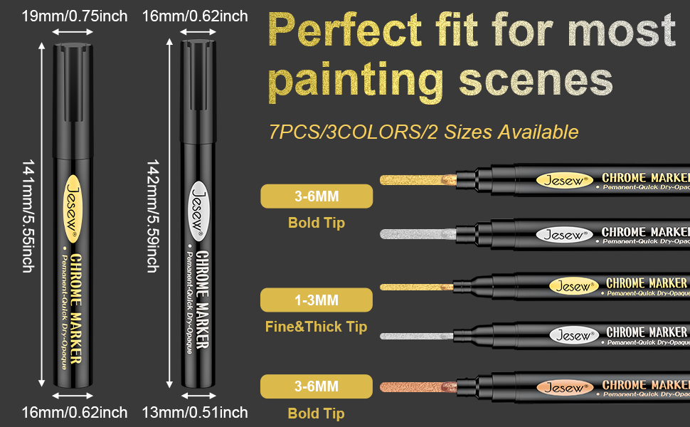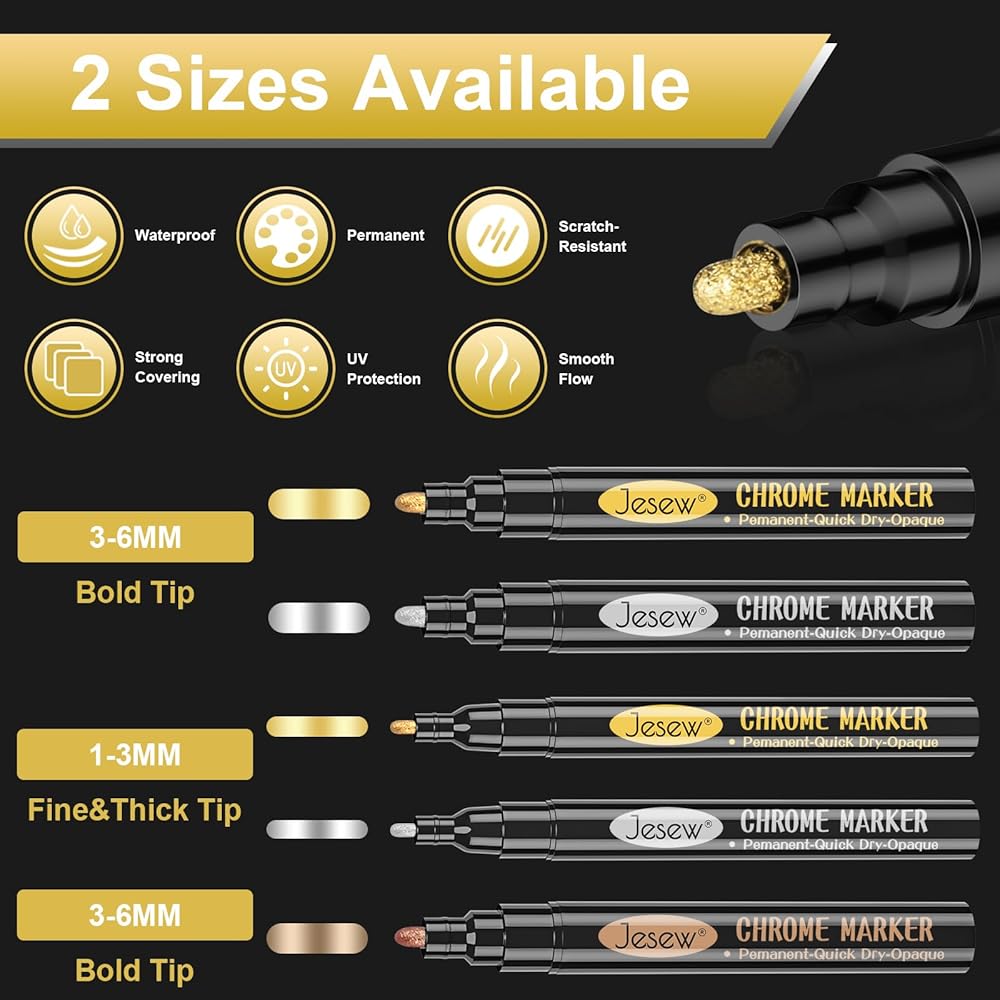 خيارات الأطراف المرنة: أطلق العنان لإمكانياتك الإبداعية مع مجموعة أقلام التحديد المصنوعة من الكروم، والتي توفر أحجام أطراف متعددة مقاس 3 مم و6 مم (3 ذهبي، و3 فضي، و1 وردي). تدعم هذه النصائح نطاقًا من 1 مم إلى 6 مم. يتيح هذا النطاق الواسع الدقة عند تتبع التفاصيل المعقدة أو تغطية المساحات الأكبر بسهولة مع توفير حماية فعالة ضد الصدأ. اكتشف طرقًا فنية جديدة دون عناء.