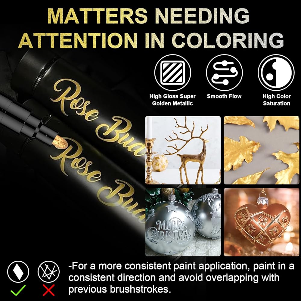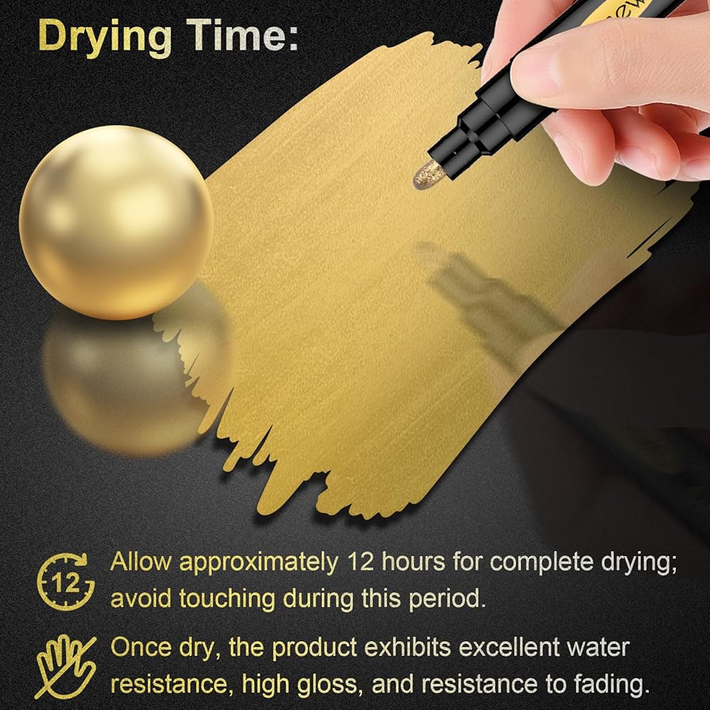 سهلة الاستخدام والمتانة: استمتع بتجربة خالية من المتاعب مع هذه الأقلام. يضمن تصميم الصمام المبتكر تدفقًا سلسًا ومتواصلًا للحبر. بمجرد تجفيفها، تصبح مقاومة للماء والخدش والأشعة فوق البنفسجية، مما يضمن أن إبداعاتك ستصمد أمام اختبار الزمن. فقط قم بهز القلم قبل الاستخدام واترك العناصر المطلية تجف لمدة 12 ساعة للحصول على أقصى قدر من التألق.