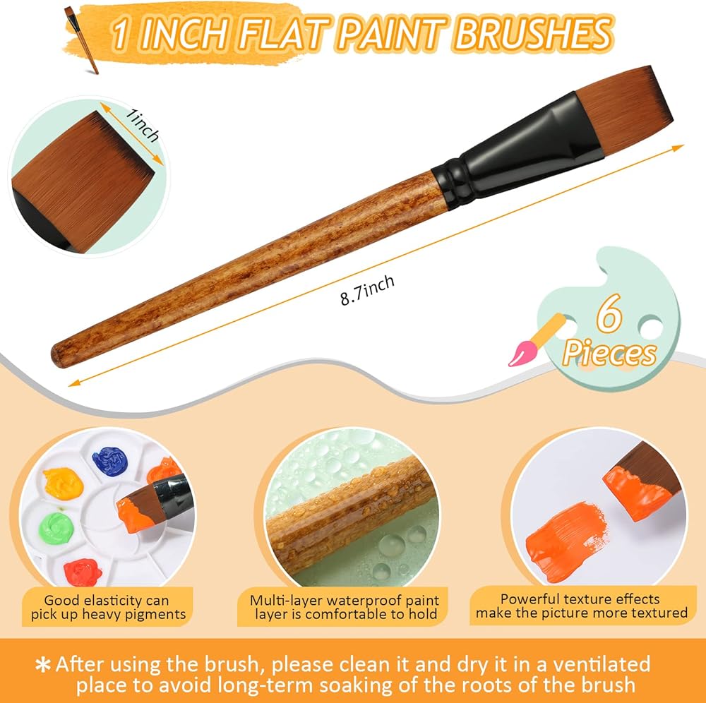 كافية للاستخدام: هناك 6 قطع من فرش الطلاء للرسم الأكريليك، وهي مصممة برؤوس فرشاة مسطحة، كافية للاستخدام والاستبدال، ويمكنك أيضًا مشاركتها مع الآخرين، صديقة للمبتدئين والفنانين