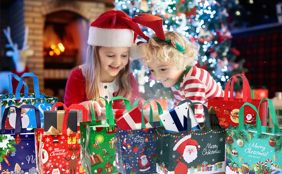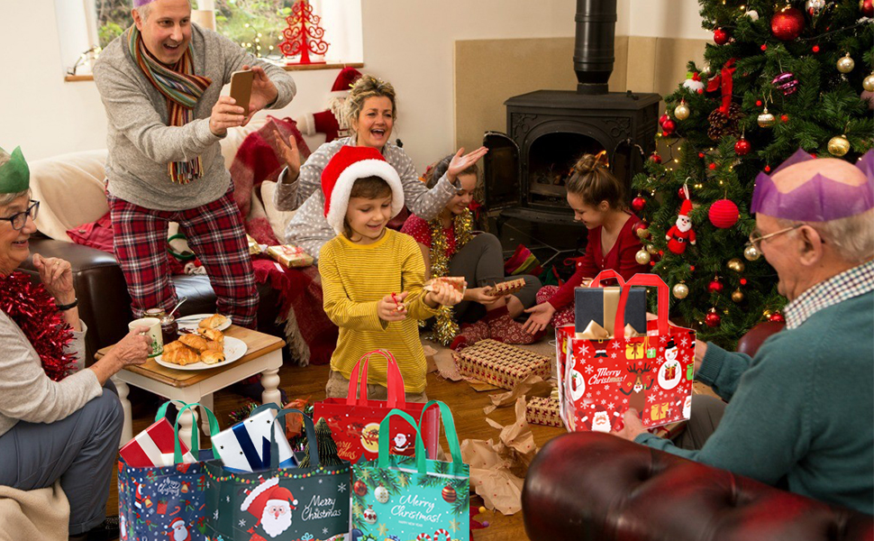 حقائب هدايا مثالية - حقائب هدايا الكريسماس مثالية للكريسماس ورأس السنة والشتاء والعطلات ومستلزمات الحفلات. مناسبة للعديد من عبوات الهدايا المختلفة، مثل الهدايا والألعاب وأكثر من ذلك، كما أنها هدية مثالية للعائلات والأصدقاء! يمكنك أيضًا استخدامها كحقيبة تسوق صديقة للبيئة للتسوق في العام الجديد.