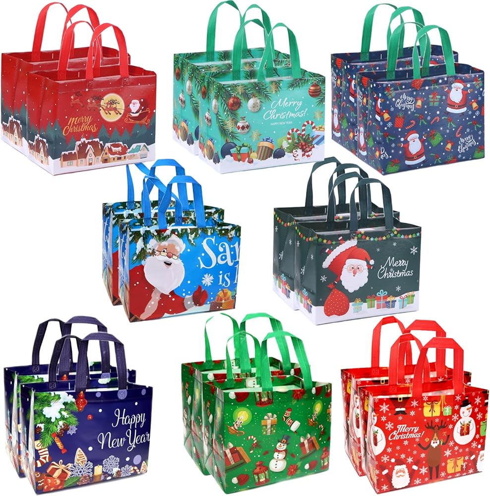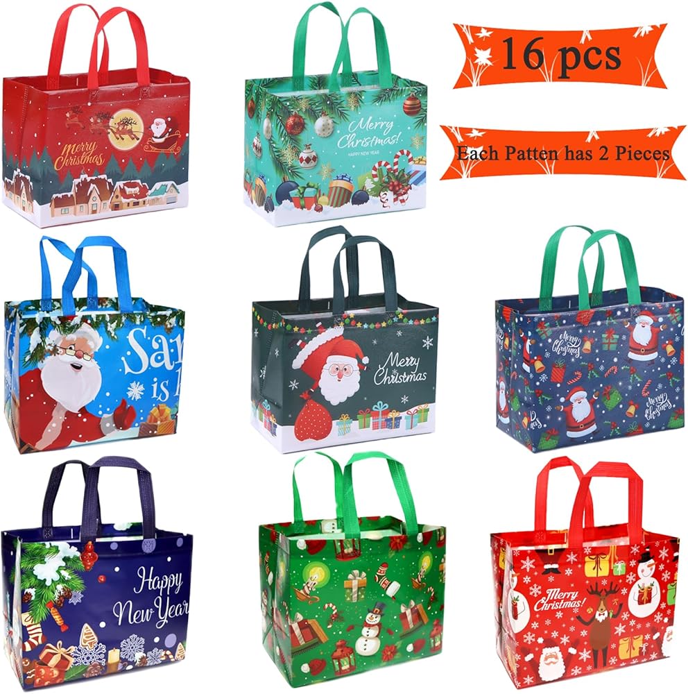 عبوة قيمة - تتضمن هذه المجموعة 16 قطعة من حقائب الكريسماس غير المنسوجة في 8 تصميمات كلاسيكية مختلفة للعطلات، وكل تصميم يحتوي على قطعتين. كافية لتلبية احتياجات التعبئة الخاصة بك في العطلات.