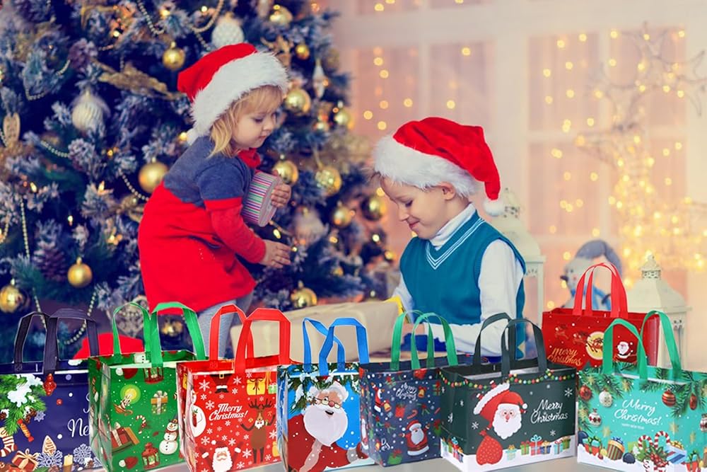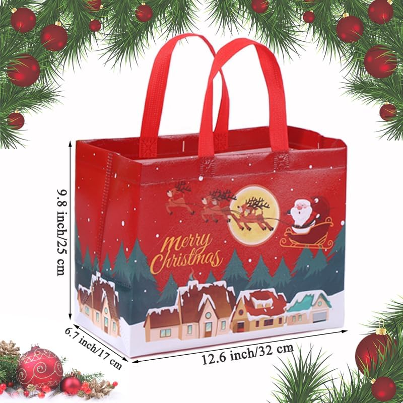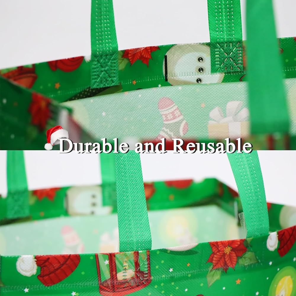 جودة عالية - حقائب هدايا الكريسماس مصنوعة من أكياس هدايا قماشية غير منسوجة عالية الجودة، آمنة على الأطفال، غير سامة، متينة وقابلة لإعادة الاستخدام، السطح مغطى بطبقة من الغشاء عالي الجودة لجعل اللون مشرقًا ومقاوم للماء وسهل التنظيف بالمسح.