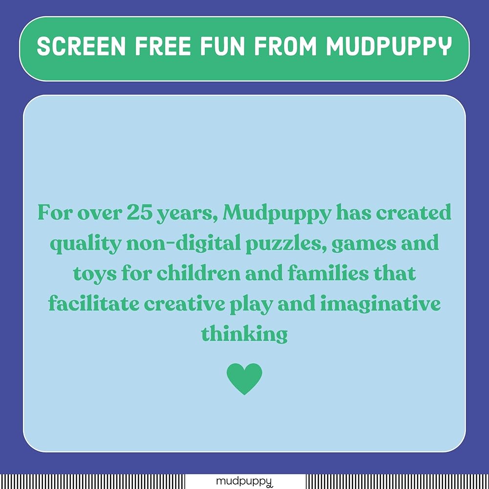 متعة خالية من الشاشة: منذ أكثر من 25 عامًا، ابتكرت Mudpuppy ألغاز وألعاب وألعاب غير رقمية عالية الجودة للأطفال والعائلات التي تسهل اللعب الإبداعي والتفكير الخيالي. تلتزم جميع منتجات Mudpuppy بأنظمة السلامة CPSIA وASTM وCE.