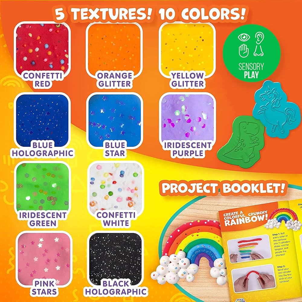 تحتوي على 20 أونصة من الطين المنسوج والمجفف بالهواء: مع 20 طين مختلف بألوان مرحة وإضافات مقرمشة مثل الكرات الإسفنجية الصغيرة اللامعة - استعد لتجربة ملمس جاهز بدون إعداد إضافي!