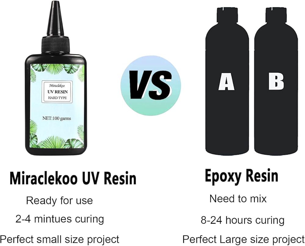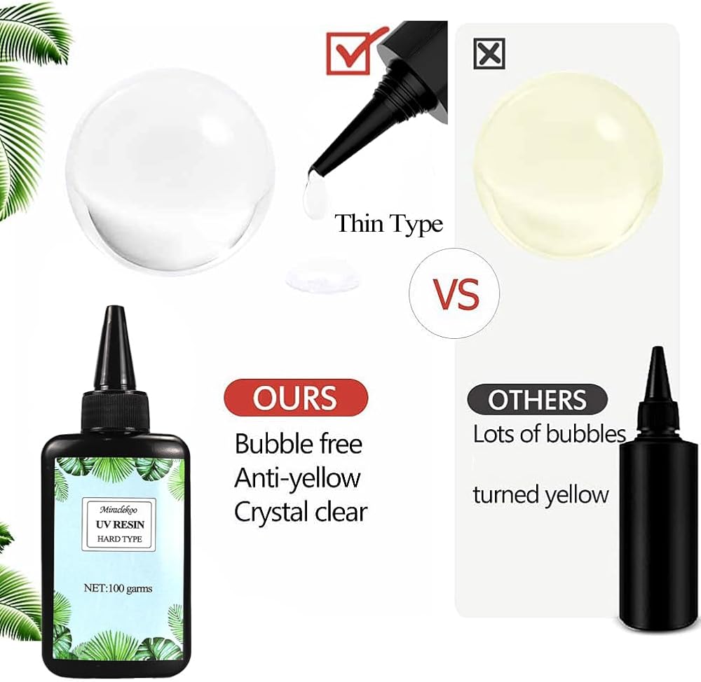 Miraclekoo راتنج الأشعة فوق البنفسجية المطور شفاف صلب، راتنج إيبوكسي الأشعة فوق البنفسجية شفاف علاج سريع للأشعة فوق البنفسجية راتنج العلاج الشمسي لقالب الراتنج، صناعة المجوهرات، الصب والطلاء، 100 جم