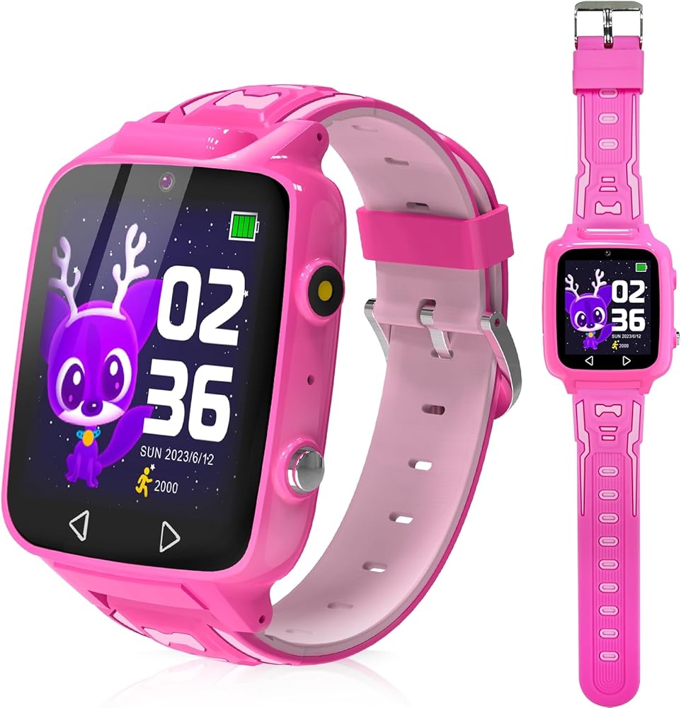 ساعة ذكية للأطفال للفتيات مع 25 لعبة ألغاز وكاميرا فيديو وآلة حاسبة عالية الدقة وشاشة تعمل باللمس وساعة منبه وعداد الخطى للأطفال وساعات هدايا عيد الميلاد للأطفال من سن 3 إلى 12 عامًا، باللون الوردي