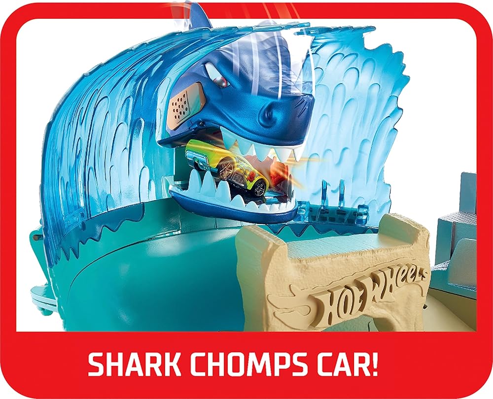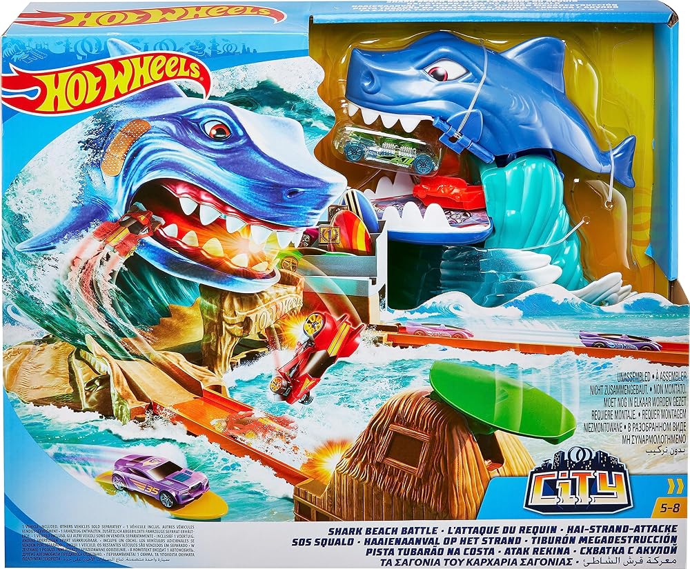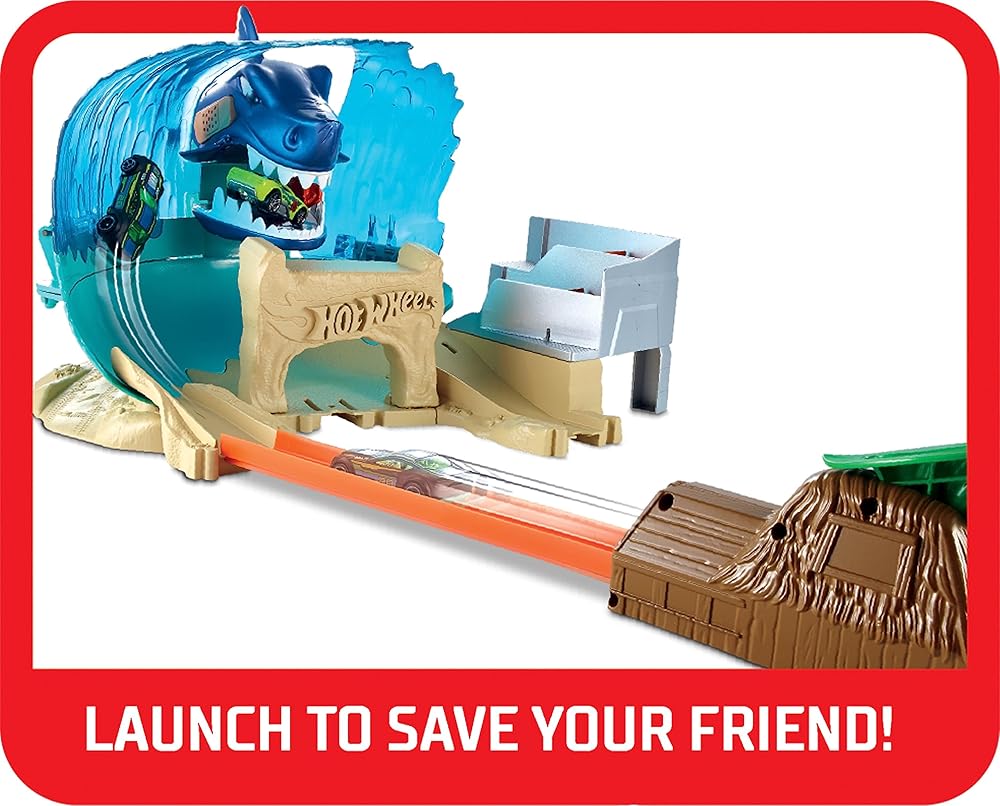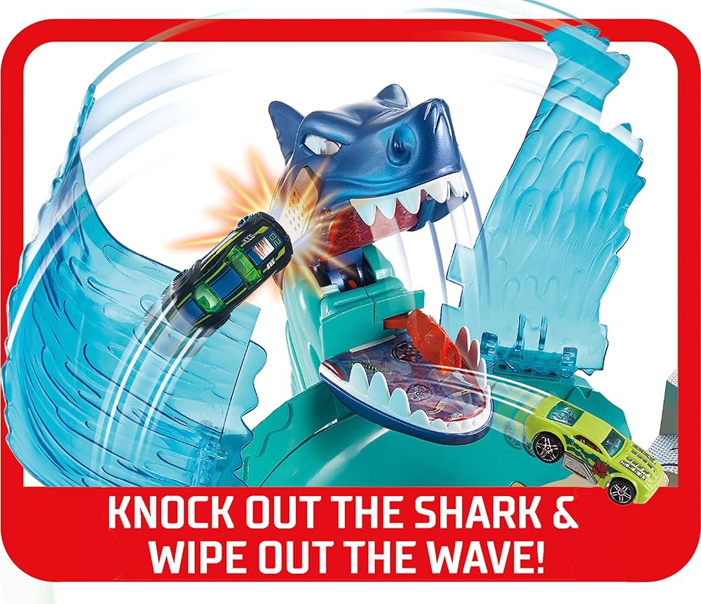 يغذي خيال الأطفال عندما يهاجم سمكة قرش عملاقة هوت ويلز City ويهدد مسابقة هوت ويلز Surf! يطلق الأطفال سيارتهم للانجراف عبر الأمواج لمحاولة تجنب قضم القرش. لقد استولى على السيارة في فكيه الضخمين! حان الوقت للإنقاذ وإطلاق سيارة أخرى. خذ الهدف واصطدم بالقرش لهزيمته. عندما يهزم القرش، تتعطل الموجة بشكل كبير ويتم تحرير المركبات! الميزات الرائعة تجعل مجموعة اللعب الضخمة هذه ذات طابع الشاطئ مثالية لساعات من رواية القصص. انجرف على الموجة والهبوط في المدرجات لتسجيل نقاط في مسابقة ركوب الأمواج! قم ببناء مدينة هوت ويلز الخاصة بك من خلال ربط مجموعات لعب سيتي الأخرى معًا. مجموعات لعب سيتي متوافقة أيضًا مع المسار البرتقالي والمجموعات الأخرى. تتضمن قاذفة تيكي هت ومركبة هوت ويلز واحدة. ​