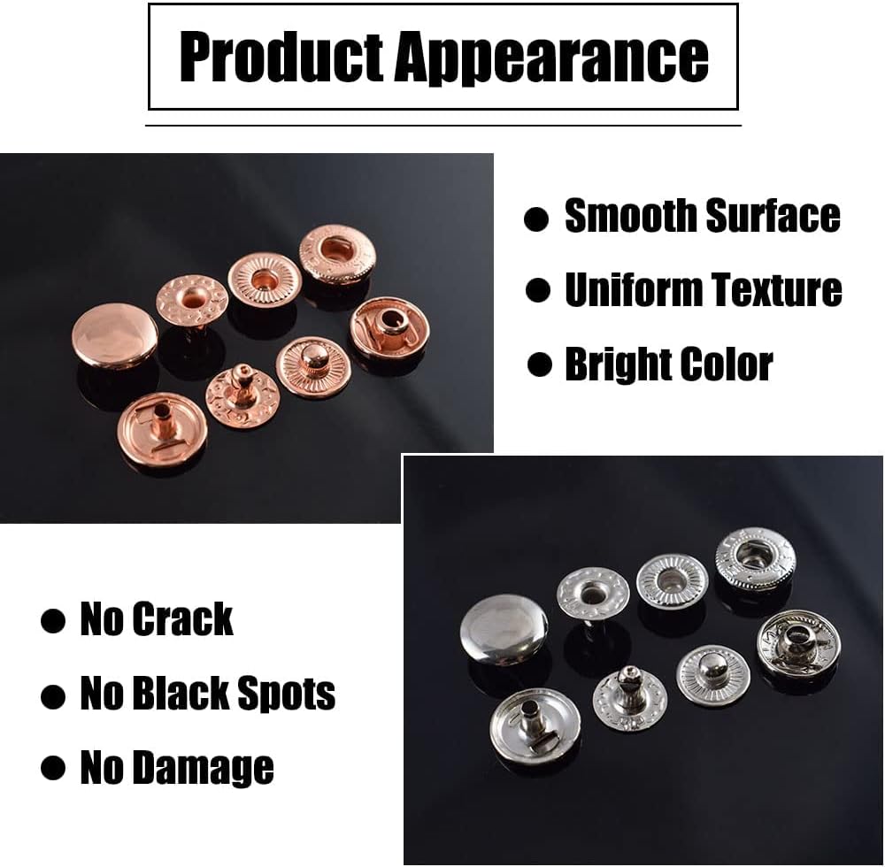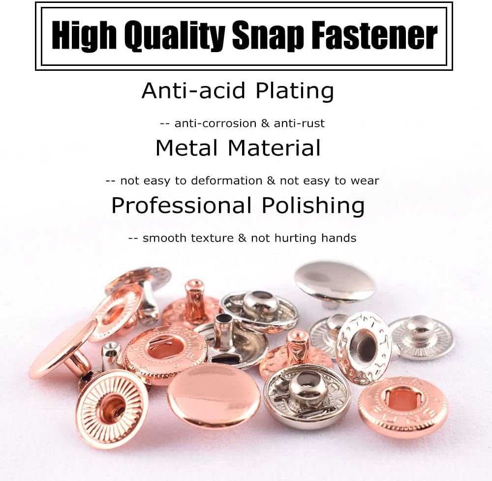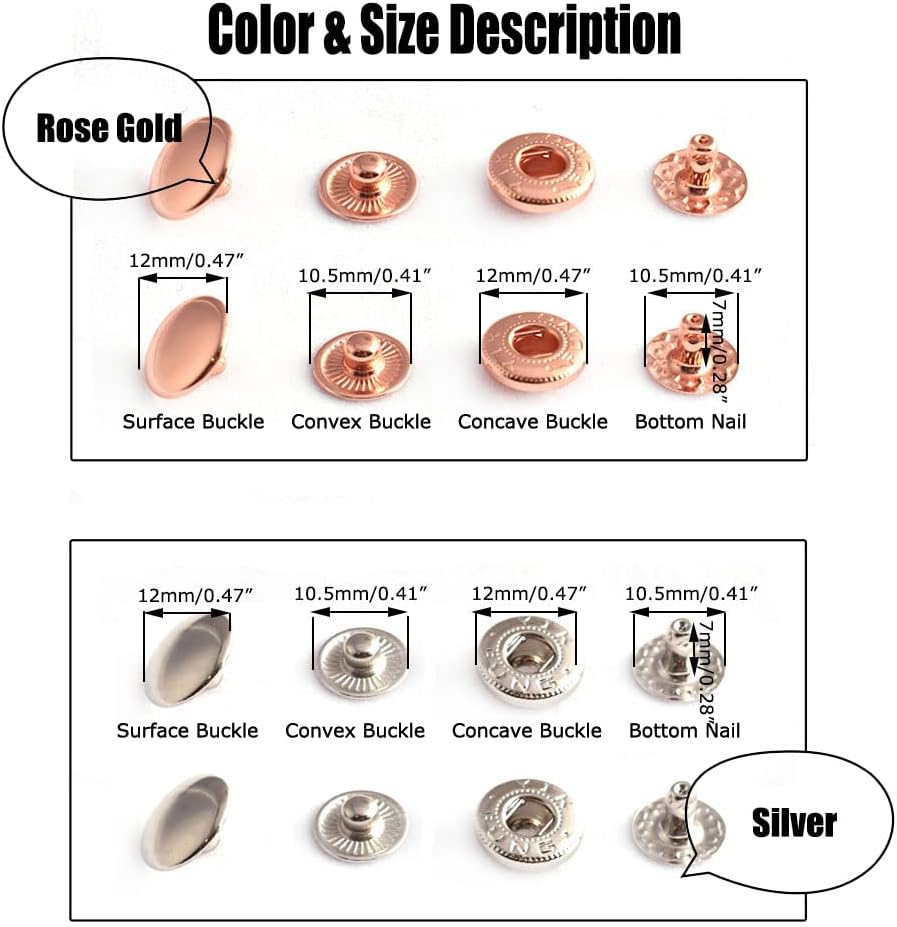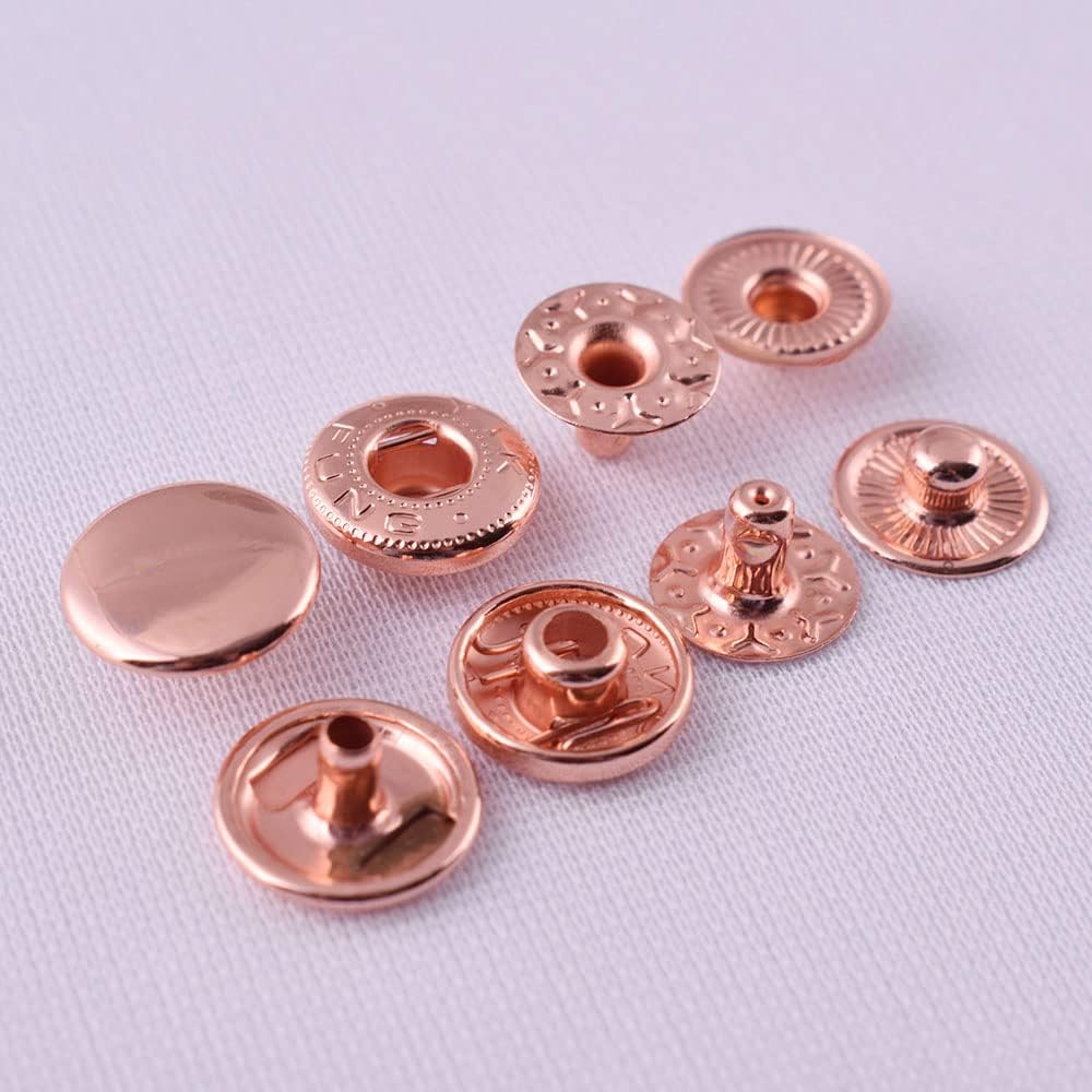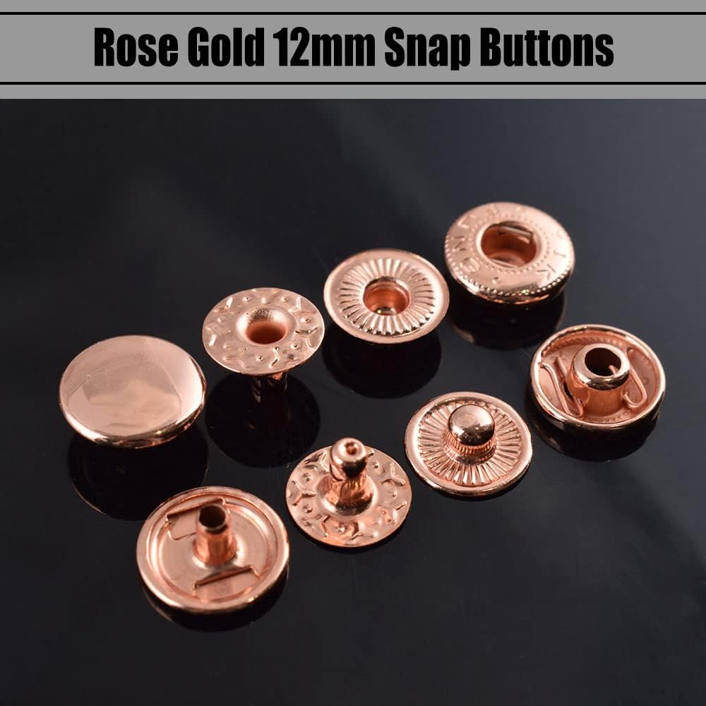 Rose Gold Leather Snap Buttons - 12mm Spring Snap Fasteners Kit Press Studs Clothing Snaps Button for Clothing Canvas Leather Craft Sewing 20 sets 🧡This Snap Fasteners is not only of high quality but also of reasonable price.It can perfectly meet your daily needs. Perfect for Doll Clothes Sewing Projects, Mini Craft Supply,Barbie, Doll shoes making. ⭐Product Information: Size: 12mm Color: Rose gold QTY: 20 Sets ⭐Coloring method: Electroplating. ⭐Characteristics: Elegant appearance, Shiny and bright,High quality is great for your different leather decorations ⭐Material: metal. This product has been electroplated, will not rust,no color fading. ⭐Usage:leather rivets is suitable for Leather Craft Clothes/Shoes/Bags/Belts Repair Decoration