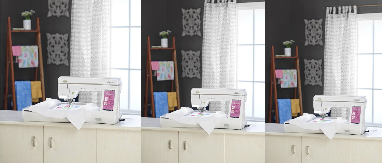 قدم حرة الحركة قابلة للتعديل، لذلك يمكنك رفع أو خفض القدم اعتمادًا على سمك المسطرة/القالب أو سمك لحاف الساندويتش.