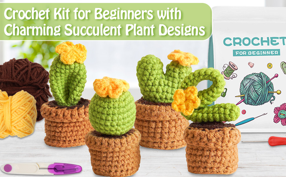 مجموعة كروشيه للمبتدئين، 4 قطع من مجموعة الكروشيه العصارية مع تعليمات خطوة بخطوة ودروس فيديو تعليمية، مجموعة كروشيه للمبتدئين،