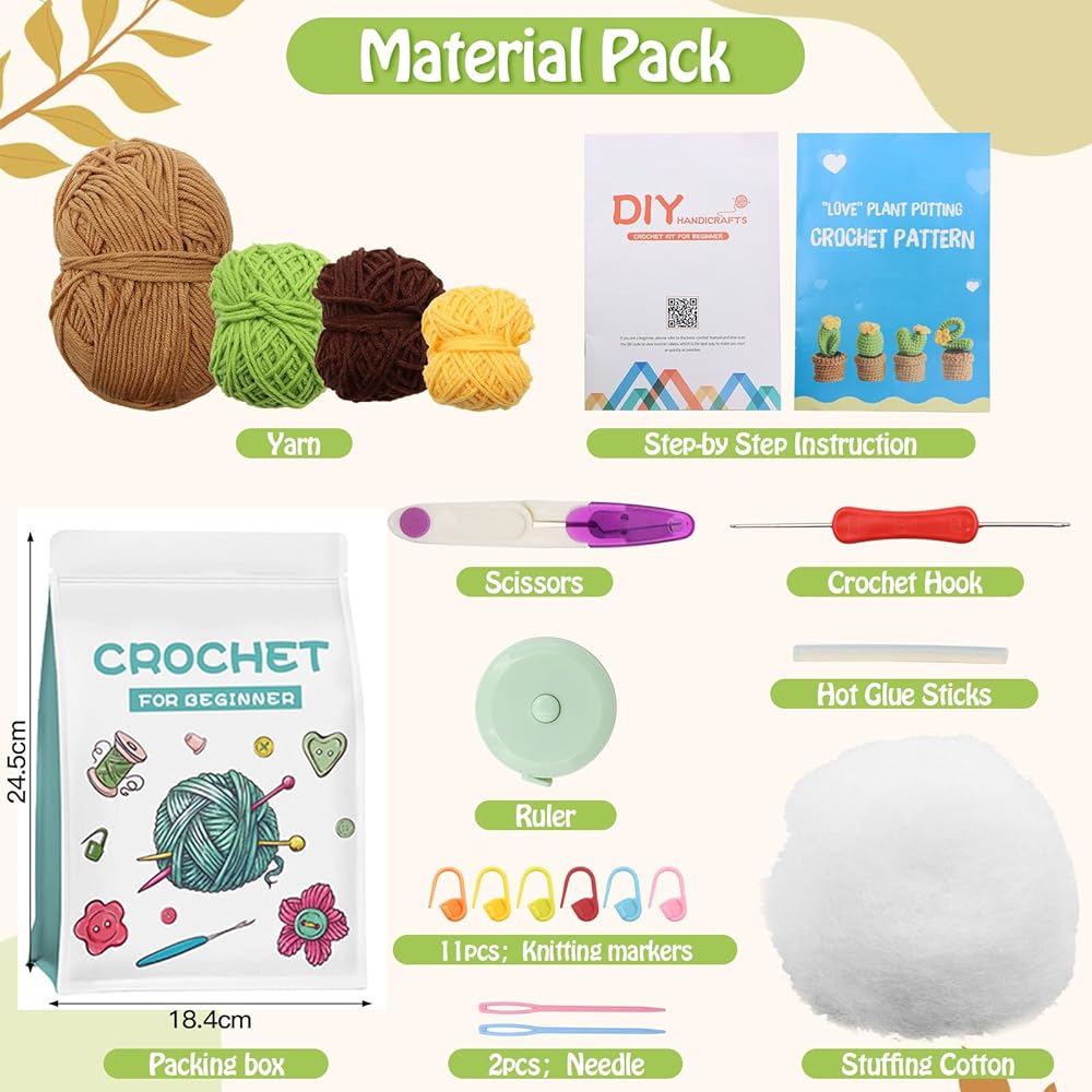 مجموعة كروشيه للمبتدئين، مجموعة كروشيه من 4 قطع مع تعليمات خطوة بخطوة ودروس فيديو، مجموعة كروشيه للمبتدئين،