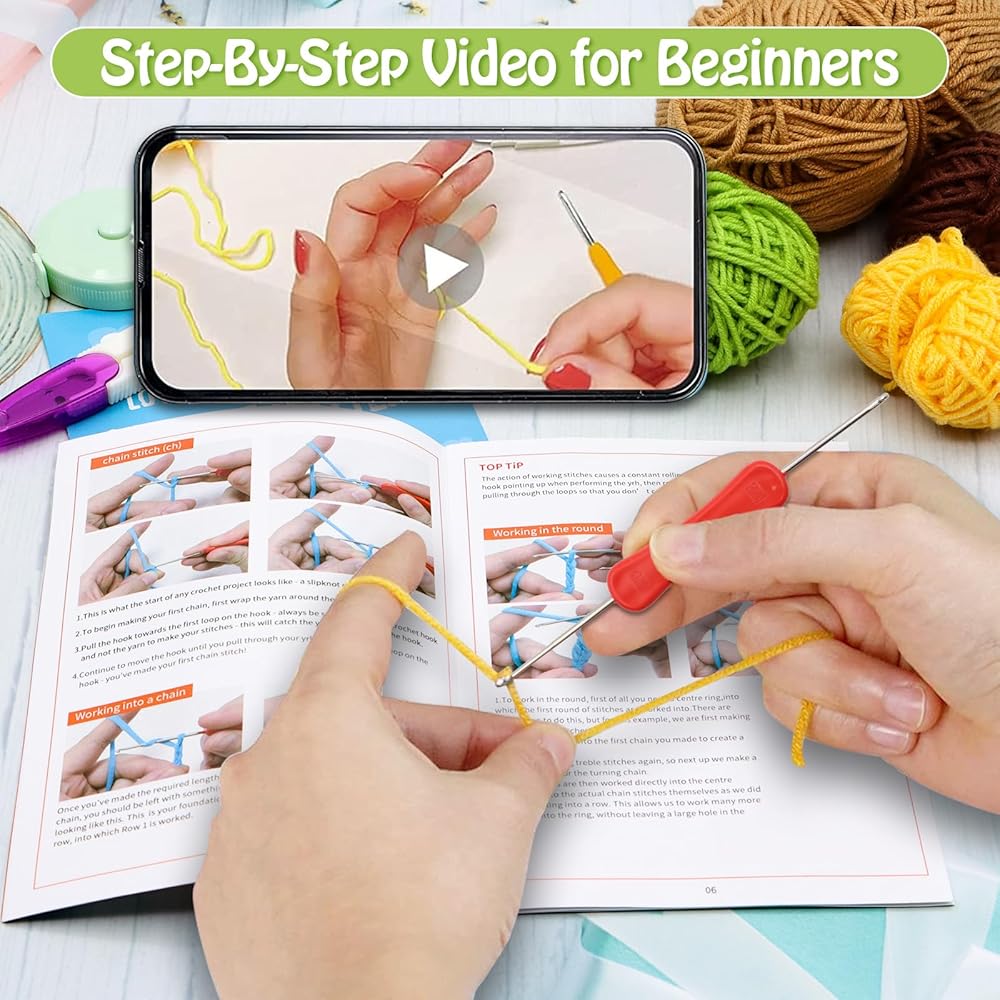 زوكون مجموعة كروشيه للمبتدئين، مجموعة كروشيه مكونة من 4 قطع مع تعليمات خطوة بخطوة ودروس فيديو تعليمية، مجموعة كروشيه للمبتدئين، مجموعة كاملة للمبتدئين (منتج حاصل على براءة اختراع)