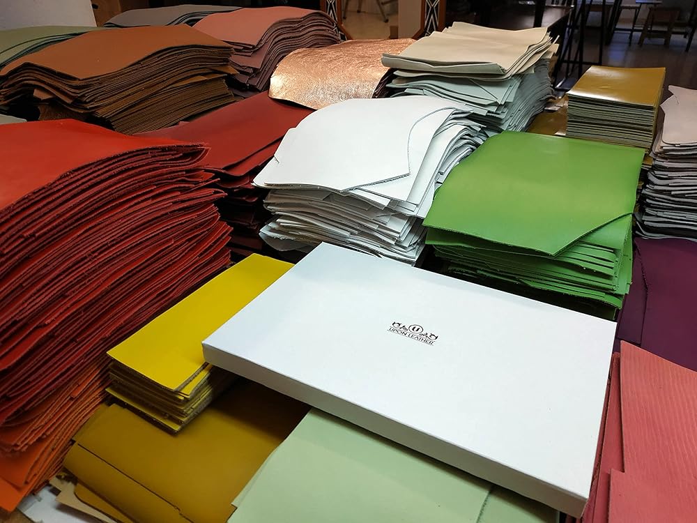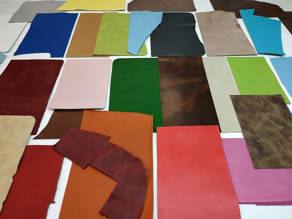 جلد البقر والخراف: 90% من جلد البقر - 10% من جلد الخراف، سوف تحصل على مجموعة متنوعة من الألوان المختلفة (15 تقريبًا )، الكثافة والسمك والقوام، والتي ستساعدك كثيرًا على صنع مشروع الحرف الجلدية الخاص بك.