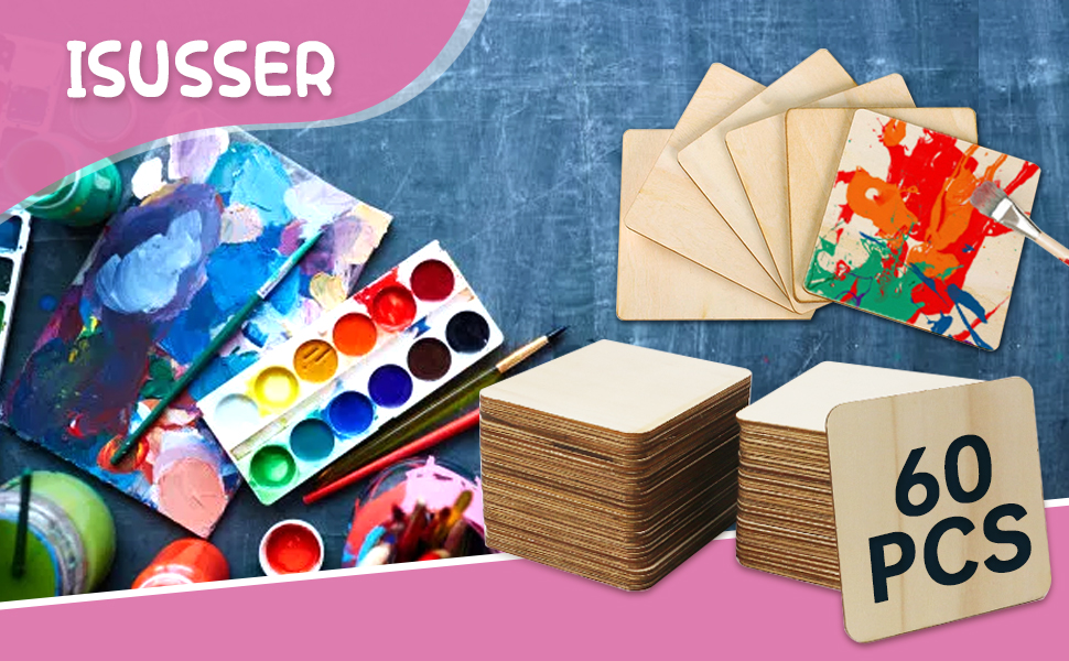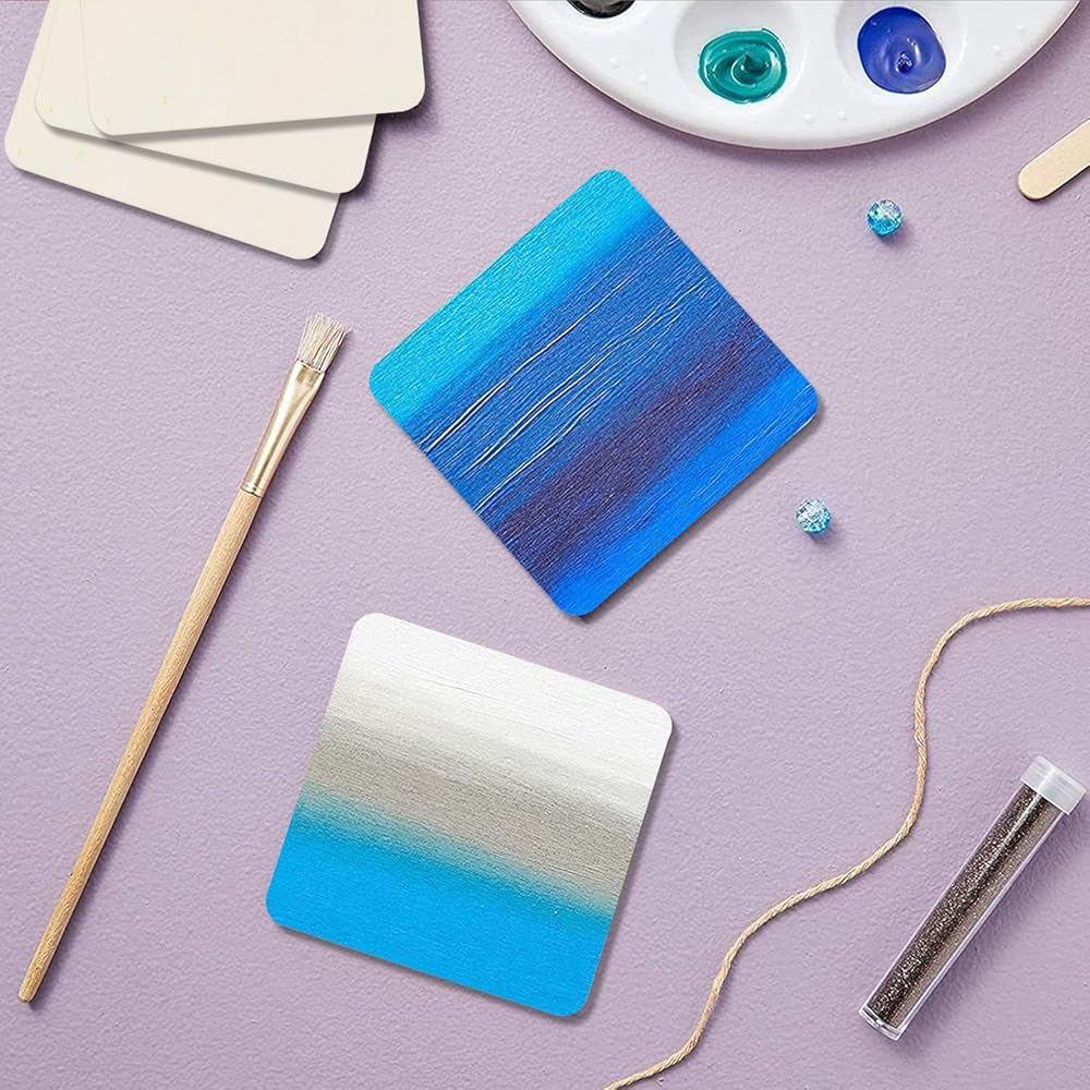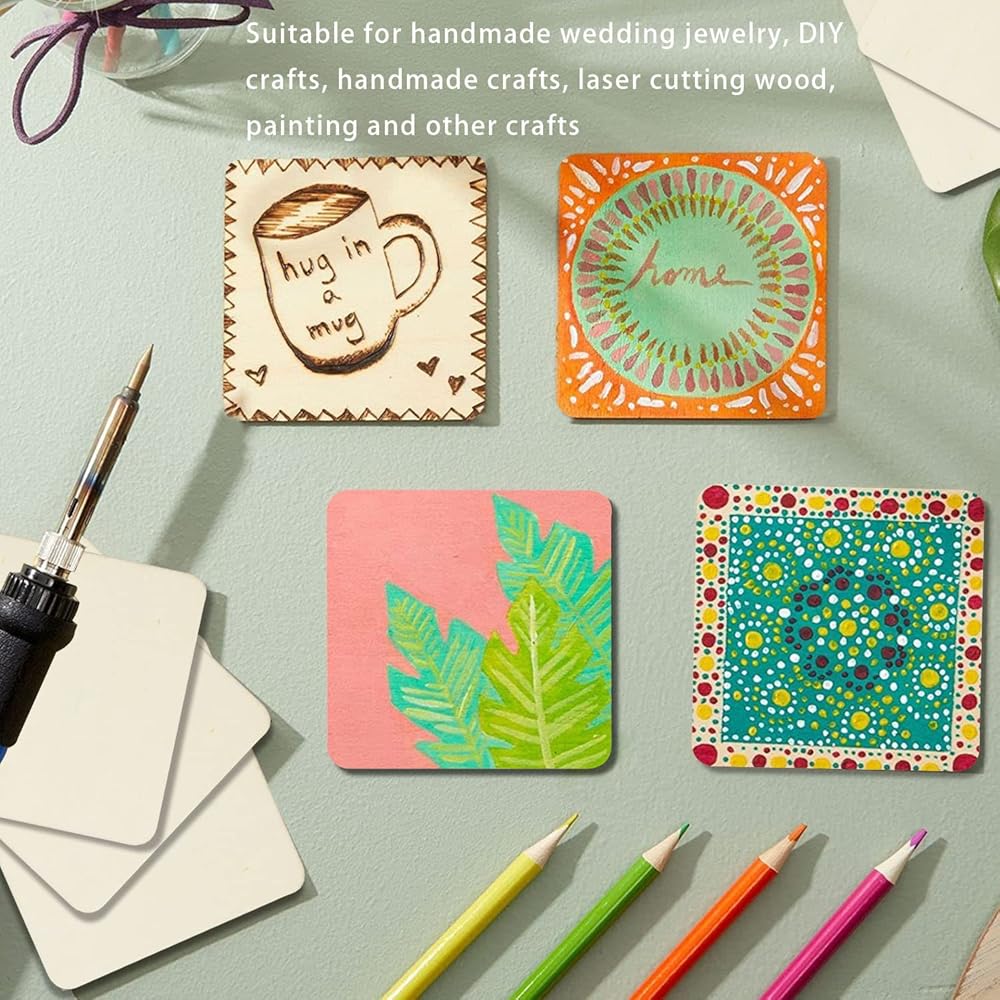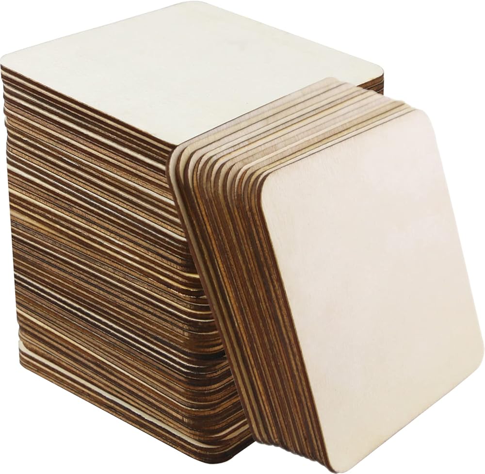 شرائح مربعة مصممة: هذه القطع الخشبية مصممة بزاوية مستديرة آمنة وجميلة. يمكن أن تتجنب الضرر الذي تسببه الزوايا. الحجم 10.16 × 10.16 سم مربع فارغ غير مكتمل.