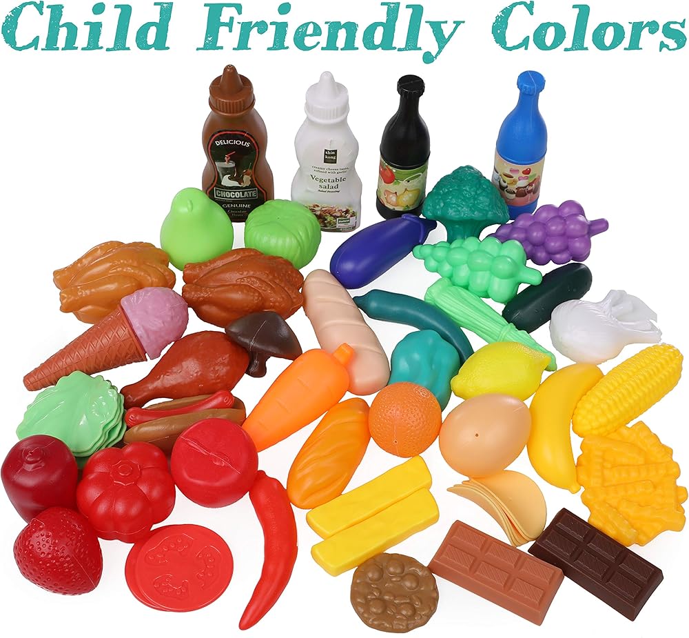 ألعاب المطبخ: مصنوعة من مواد عالية الجودة، تم اختبار طعام اللعب البلاستيكي هذا بشكل آمن ويلبي جميع المعايير الأمريكية. إنها مجموعة الطعام المثالية لإضافتها إلى مطبخ طفلك الصغير
