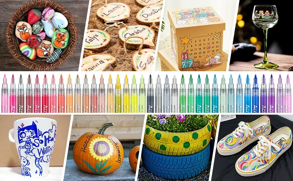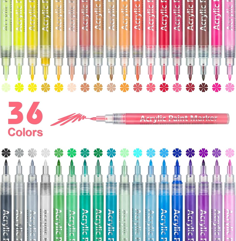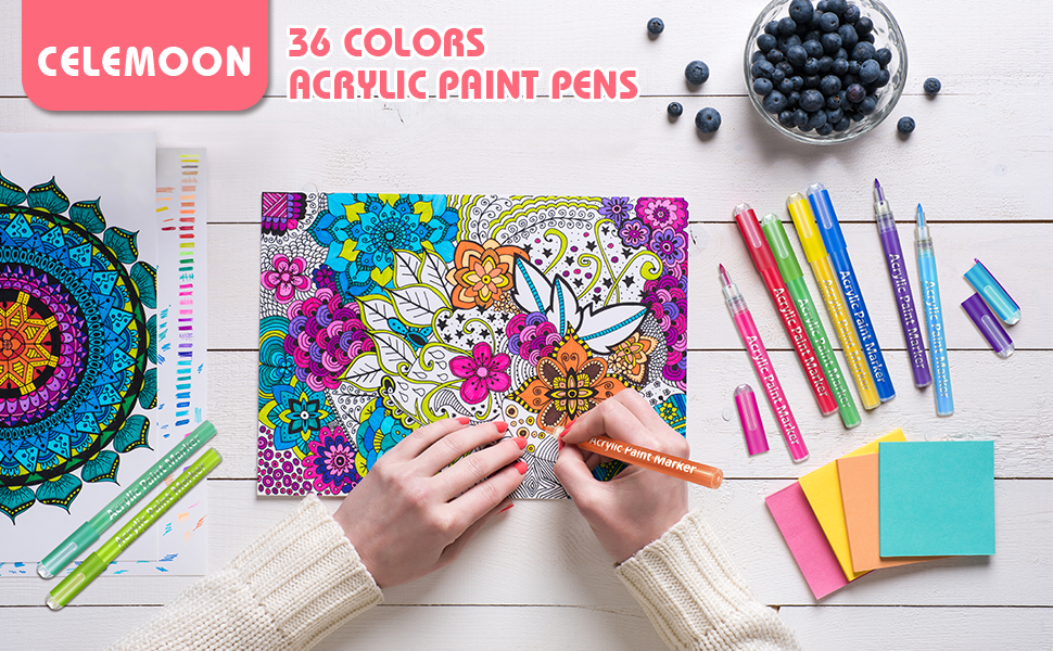 CeleMoon Acrylic Paint Pens Paint markers for Rock Painting, Stone, Ceramic, Glass, Wood, Canvas. Set of 36 Colors Premium Acrylic Paint Markers Art Supplies for Adults Kids DIY Crafts Making