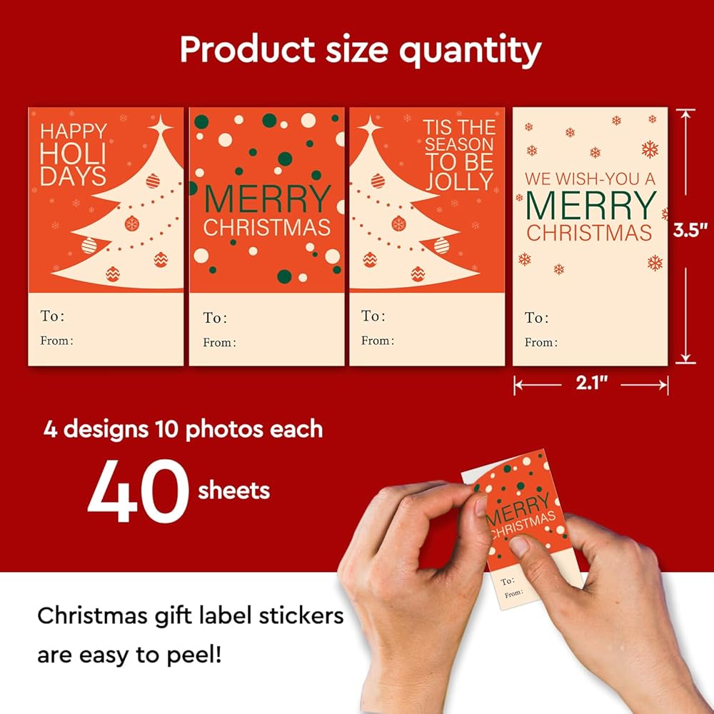 علامات التفاف هدية عيد الميلاد ملصقات لاصقة ، عيد ميلاد سعيد ، هدايا عيد الميلاد الالتفاف الزخرفة واللوازم للأطفال ، أصدقاء ، ملصقات علامات الهدايا لعيد الميلاد ، 40 ملصق الهدايا - FS207
